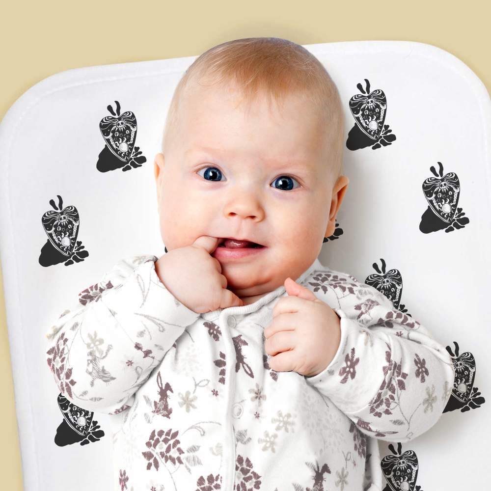 Each cloth is printed on one side with a unique pattern created by one of our artists. It's made from a super soft fleece so it's ultra-absorbent, fast drying and delicate on your baby's skin.