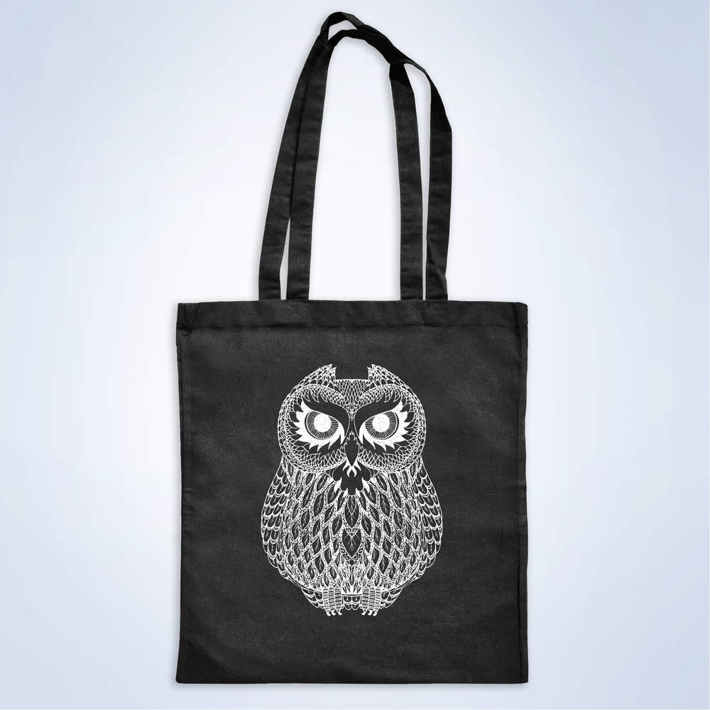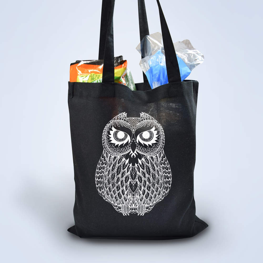 'Owl' Classic Black Tote Shopper Bag (ZB00000964)