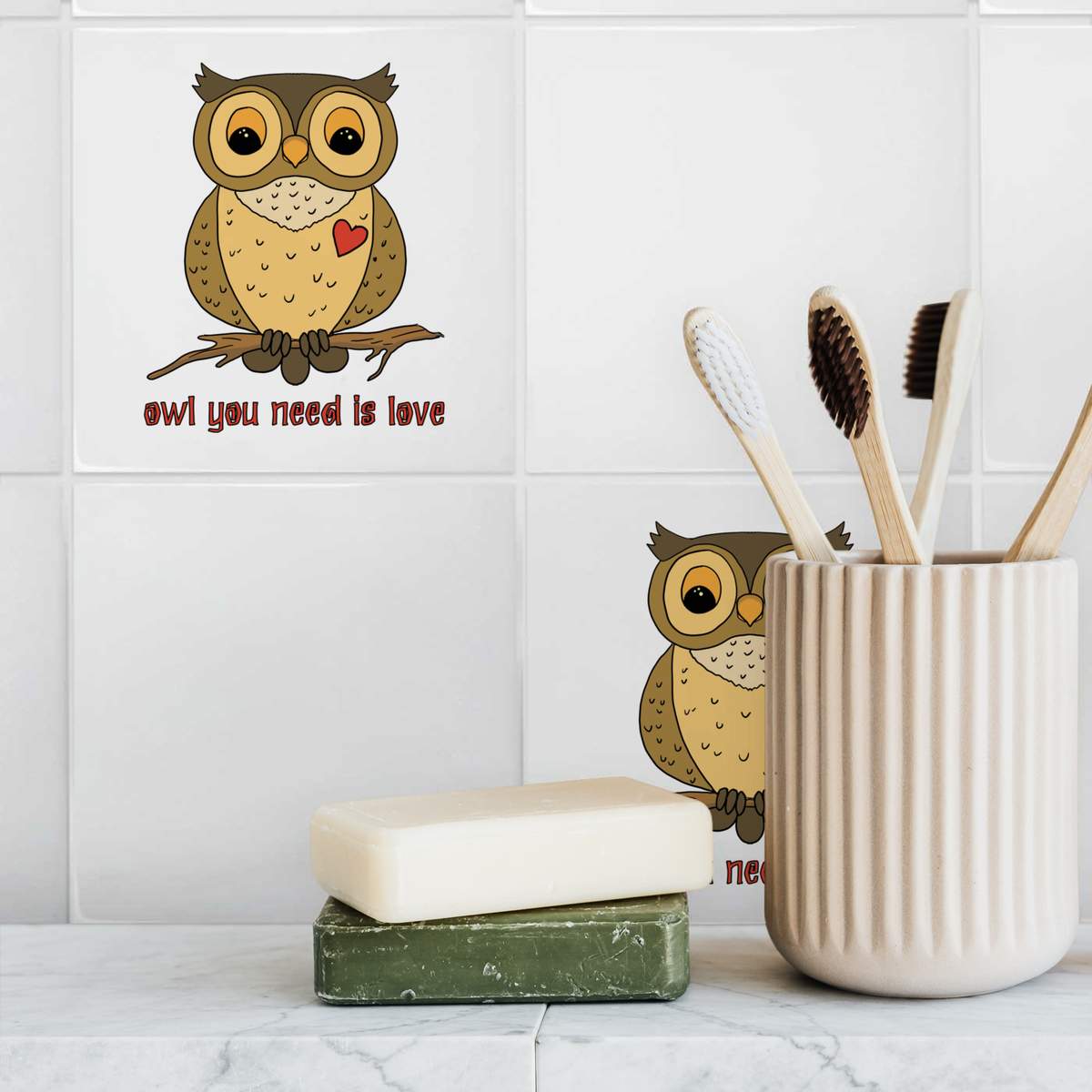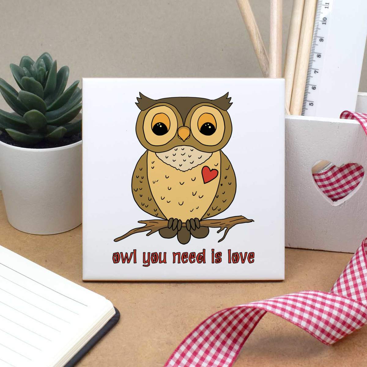'Owl You Need Is Love' 108mm Square Ceramic Tile (TD00023103)