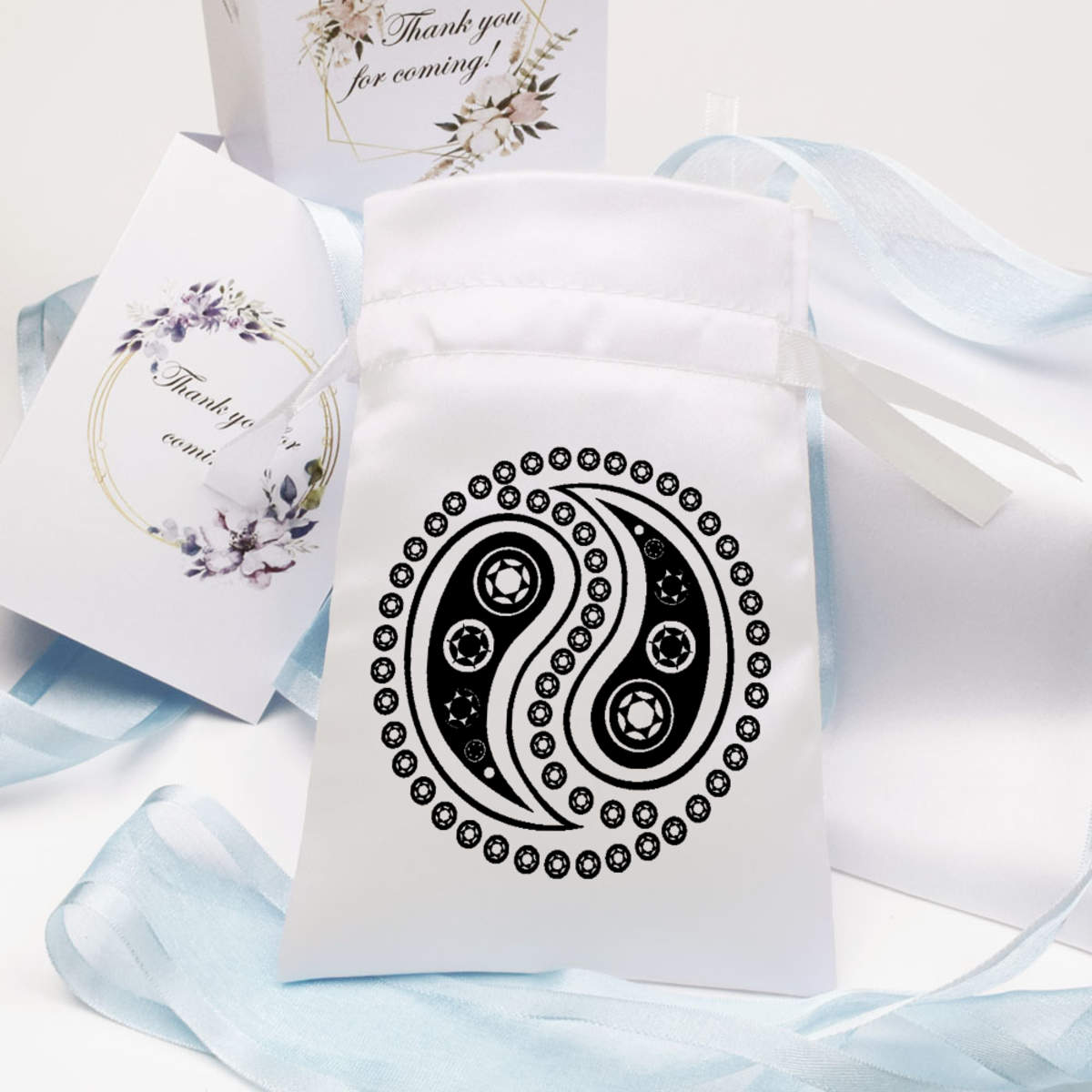 Add a touch of luxury to your special occasions and gifts with our exquisite Satin Drawstring Bags. The convenient drawstring closure ensures easy and secure fastening, allowing you to effortlessly open and close the bag while keeping its contents safe. Featuring a double-sided print, this decorative satin pouch will upgrade your occasion, ensuring a lasting impression on your guests. Its smooth touch and gentle sheen makes it a delightful keepsake gift as a wedding favour, candy pouch and more.