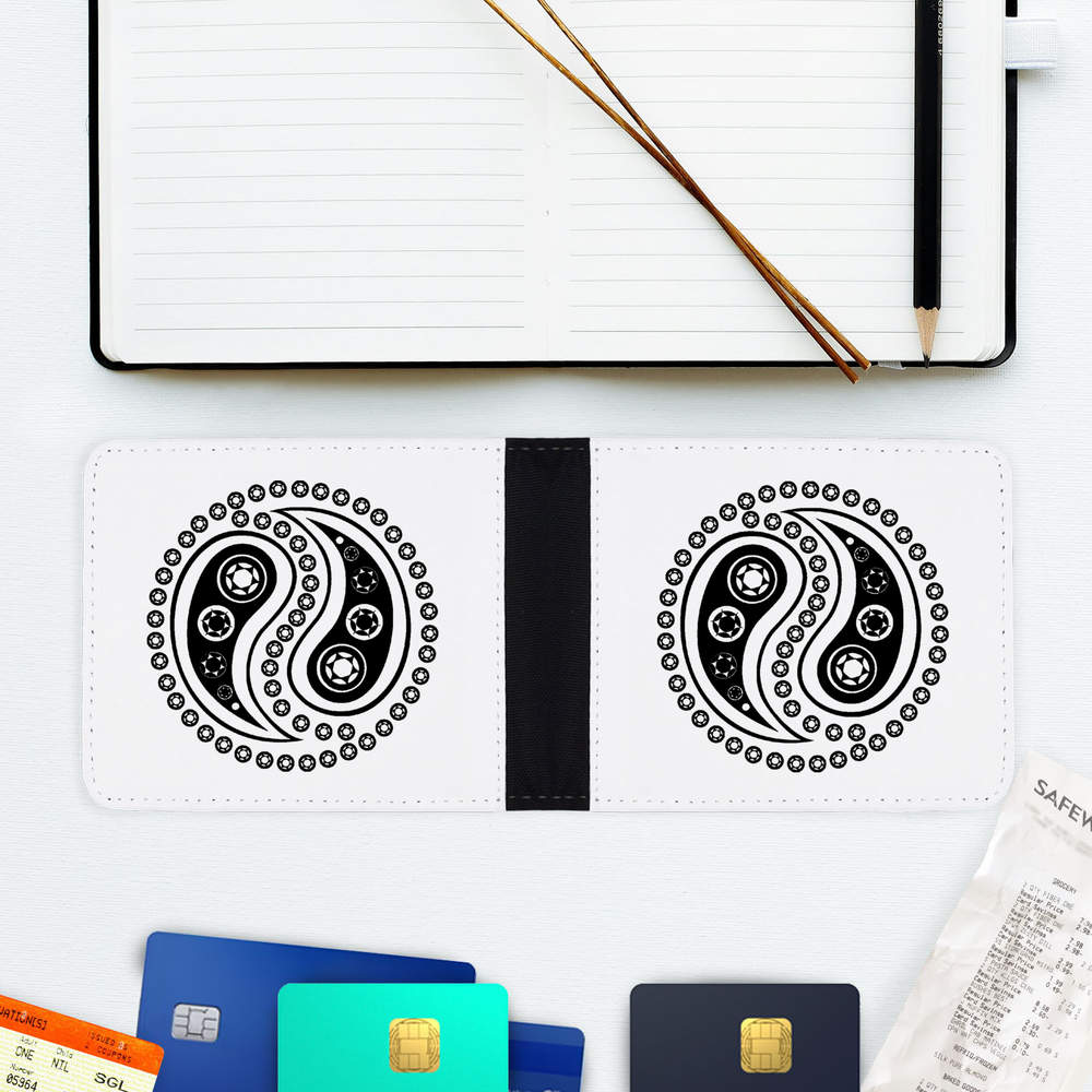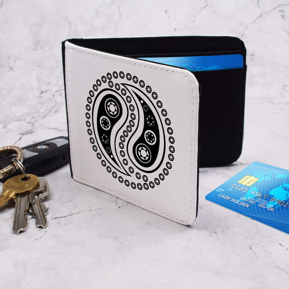 This practical, folded wallet strikes the perfect balance between compactness and spaciousness, making it the ideal size for your essentials. It fits comfortably in your pocket or purse without compromising on storage capacity. Not only does this wallet ensure robust protection for your valuables, but it also features four card slots and three extra slots, along with a flexible cash sleeve. Round edges distribute stress and impact more evenly, reducing the likelihood of wear and tear. Amplify both your fashion and utility with this adaptable and refined wallet, meticulously crafted to seamlessly complement your lifestyle with a unique design printed on both sides.