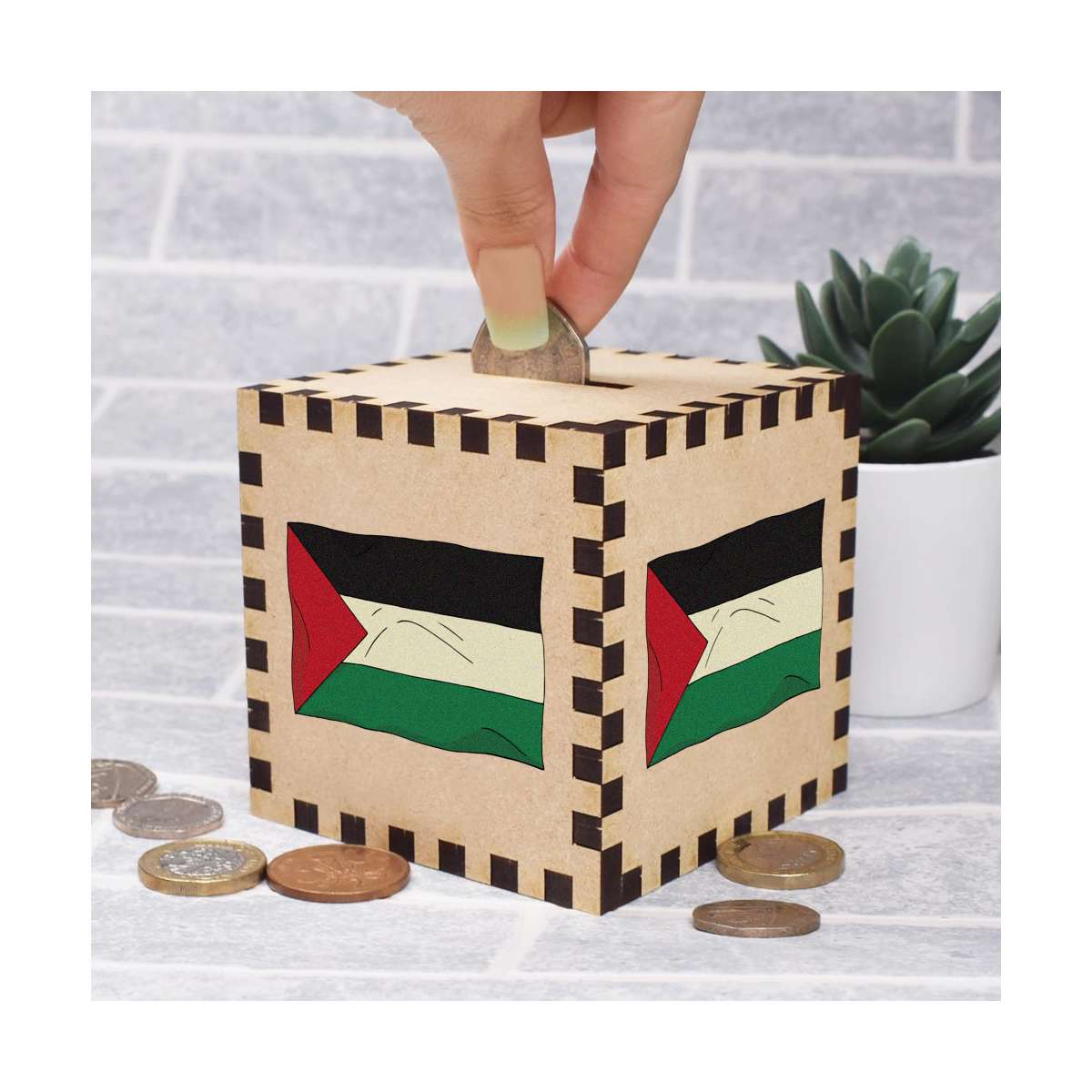 An 8.5cm wooden money box made out of the finest quality MDF and printed on all four sides with a unique design. The bottom is flat and the top has a slot for coins, the box itself is 85mm on each side, with a 35mm x 5mm coin slot, so please be sure it's suitable for you.