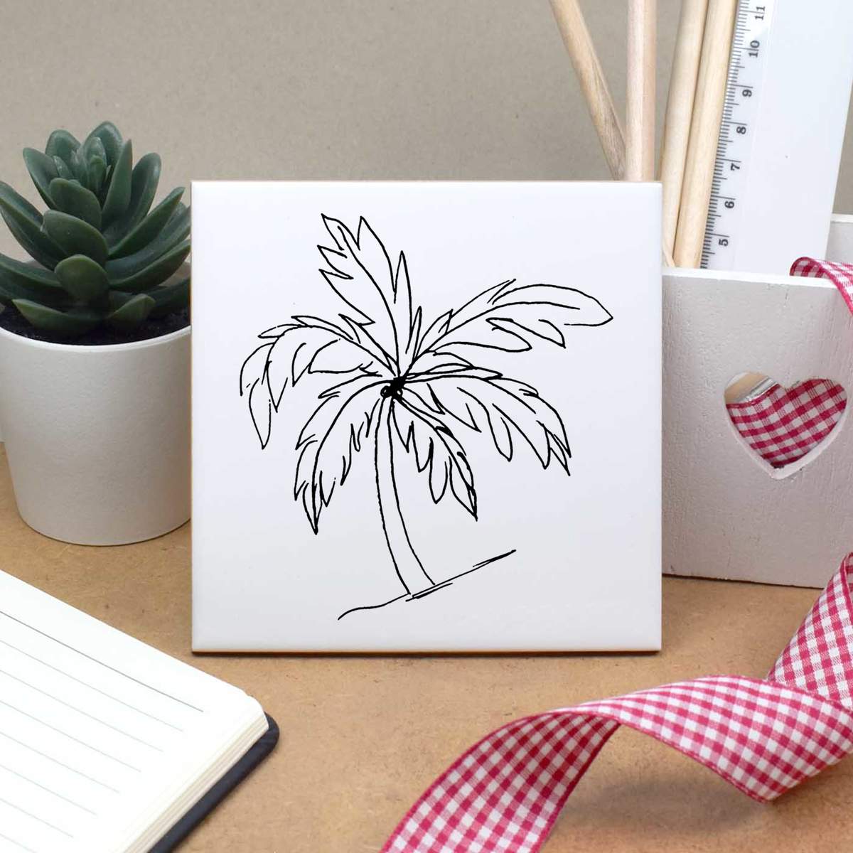 'Palm Tree' 108mm Square Ceramic Tile (TD00010971)
