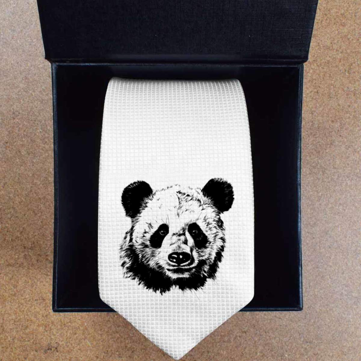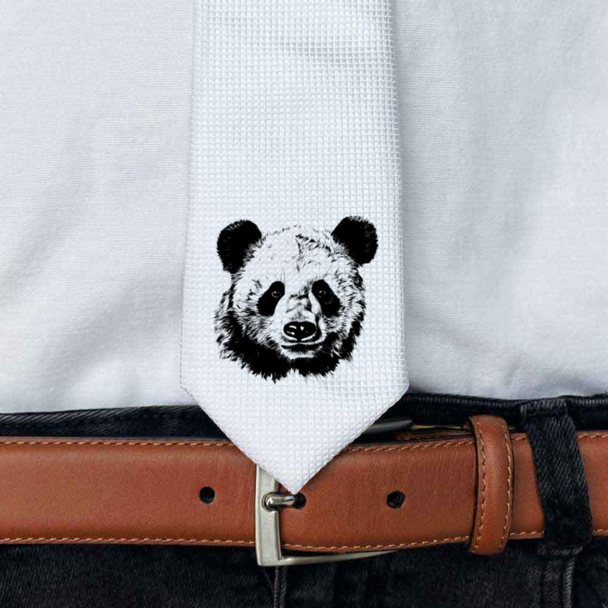 This stylish slim white tie is guaranteed to add class to any outfit. Printed on the front with a design from one of our talented designers, these ties are perfect for formal events, special occasions or making a statement at the office.