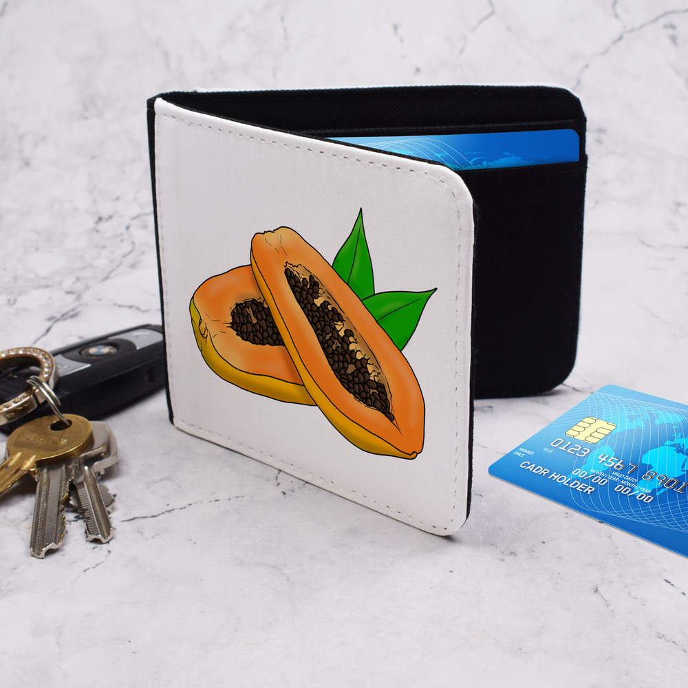 This practical, folded wallet strikes the perfect balance between compactness and spaciousness, making it the ideal size for your essentials. It fits comfortably in your pocket or purse without compromising on storage capacity. Not only does this wallet ensure robust protection for your valuables, but it also features four card slots and three extra slots, along with a flexible cash sleeve. Round edges distribute stress and impact more evenly, reducing the likelihood of wear and tear. Amplify both your fashion and utility with this adaptable and refined wallet, meticulously crafted to seamlessly complement your lifestyle with a unique design printed on both sides.