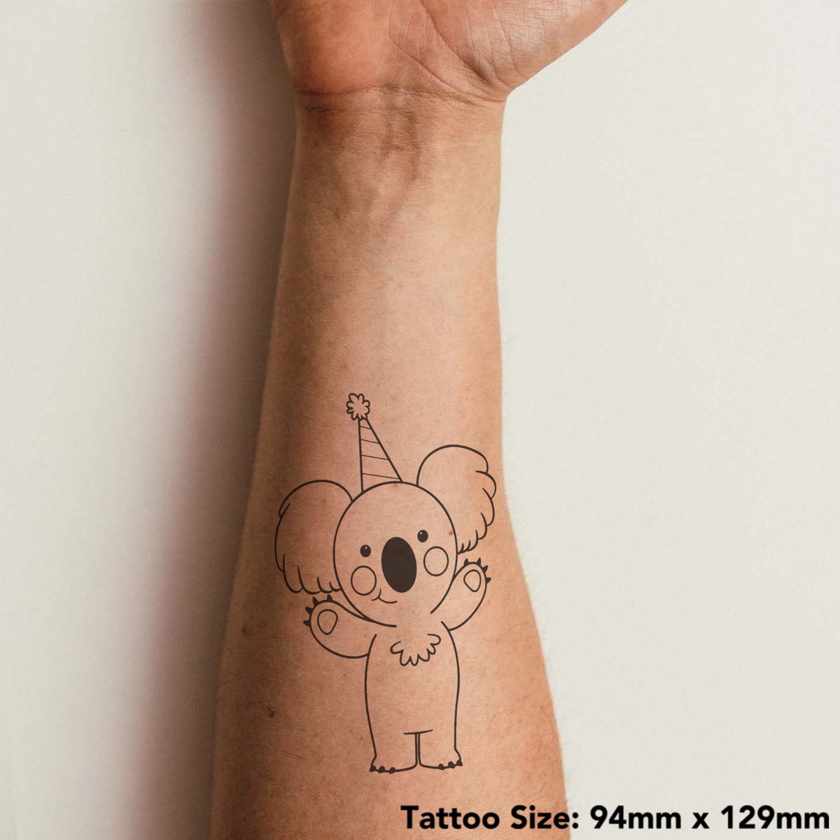 'Party Koala' Temporary Tattoo - Water Resistant, Skin-Safe, Non-Toxic Transfer (TO00028868)