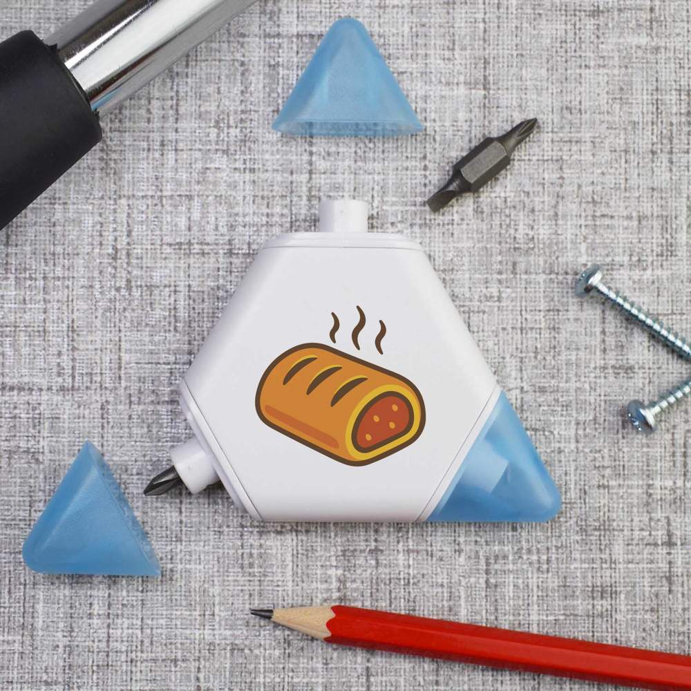 Our triangular compact multi tool is printed on one side with a unique design, making it a great gift for DIY lovers. This 3-in-1 tool set contains a tape measure and 2 different screwdriver attachments and each corner has a snap shut lid. One corner reveals a 1 meter tape measure, while the others hide two reversible screwdriver attachments, one larger and one smaller, both of which have a cross head on one end and a flat head on the other.
