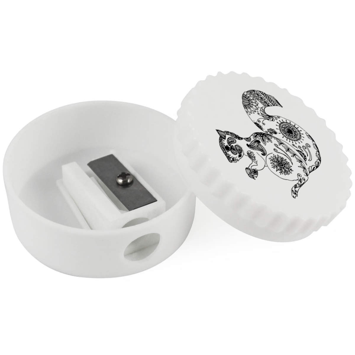 Keep your pencils sharp and ready to use with this sturdy, single hole sharpener featuring one of our awesome designs. The twisting lid conceals the hole to the blade and removes completely to allow shavings to be discarded.