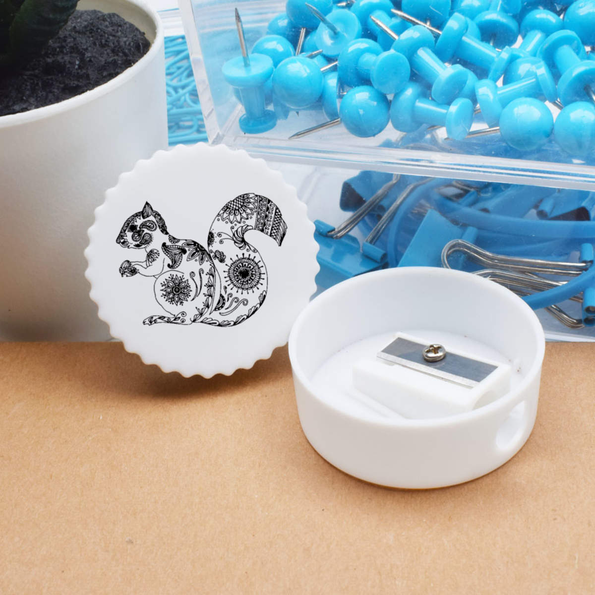 'Patterned Squirrel' Compact Pencil Sharpener (PS00029493)