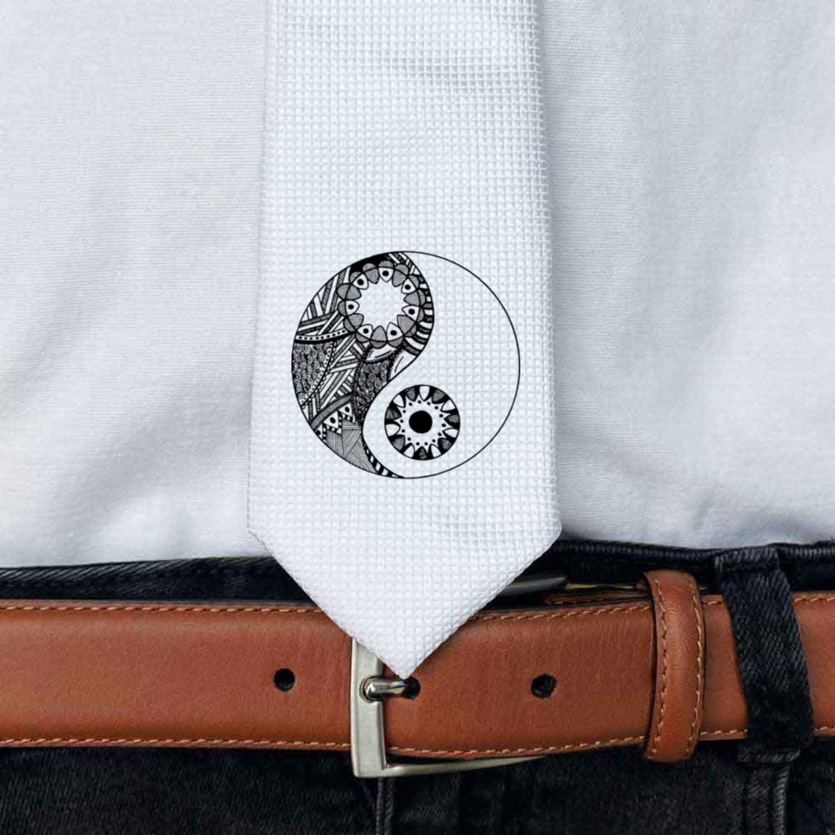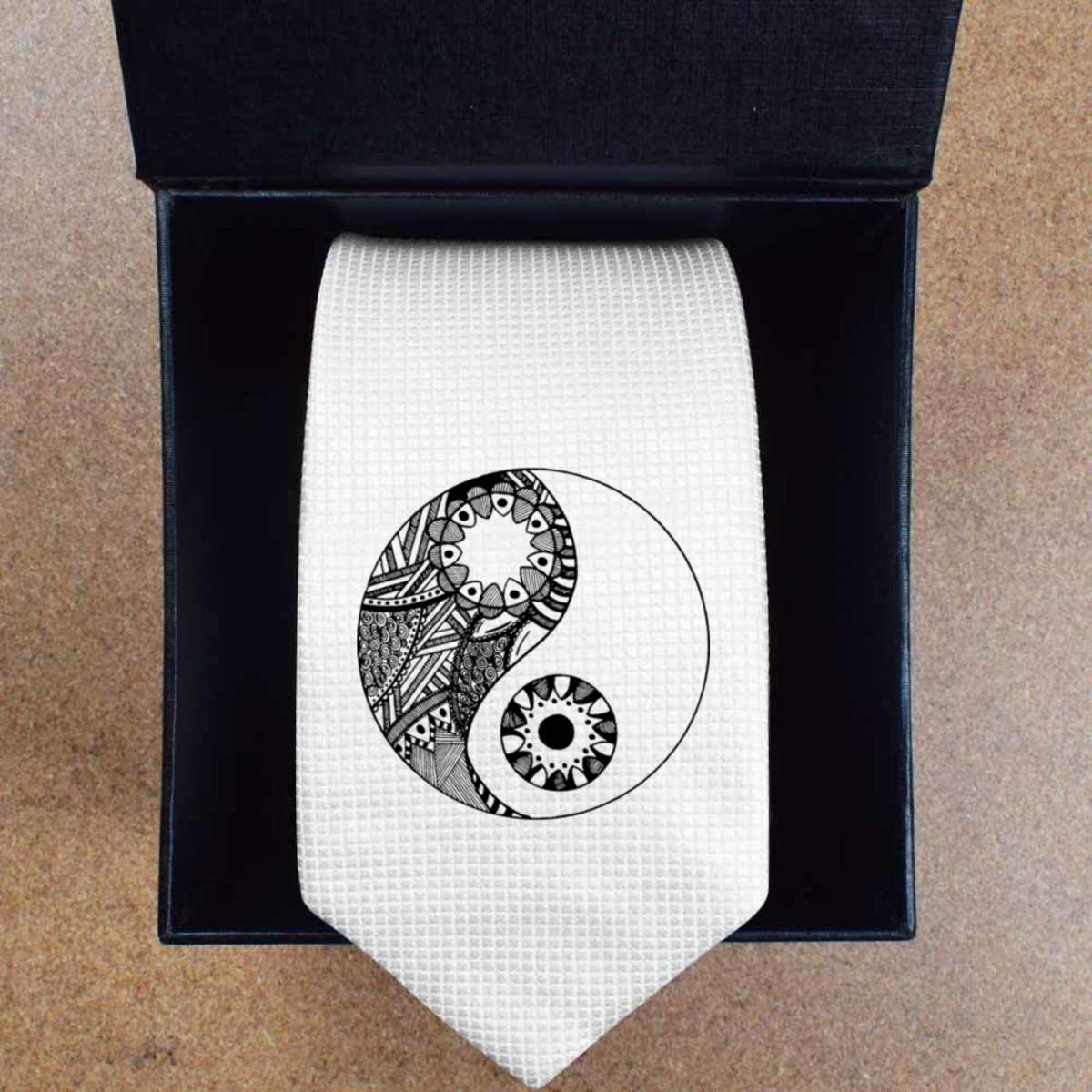 'Patterned Yin & Yang' White Tie / Necktie with Gift Box (AT00004934)
