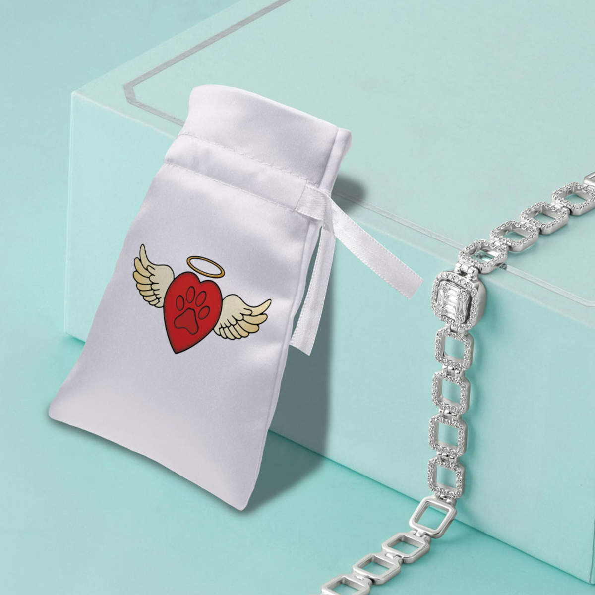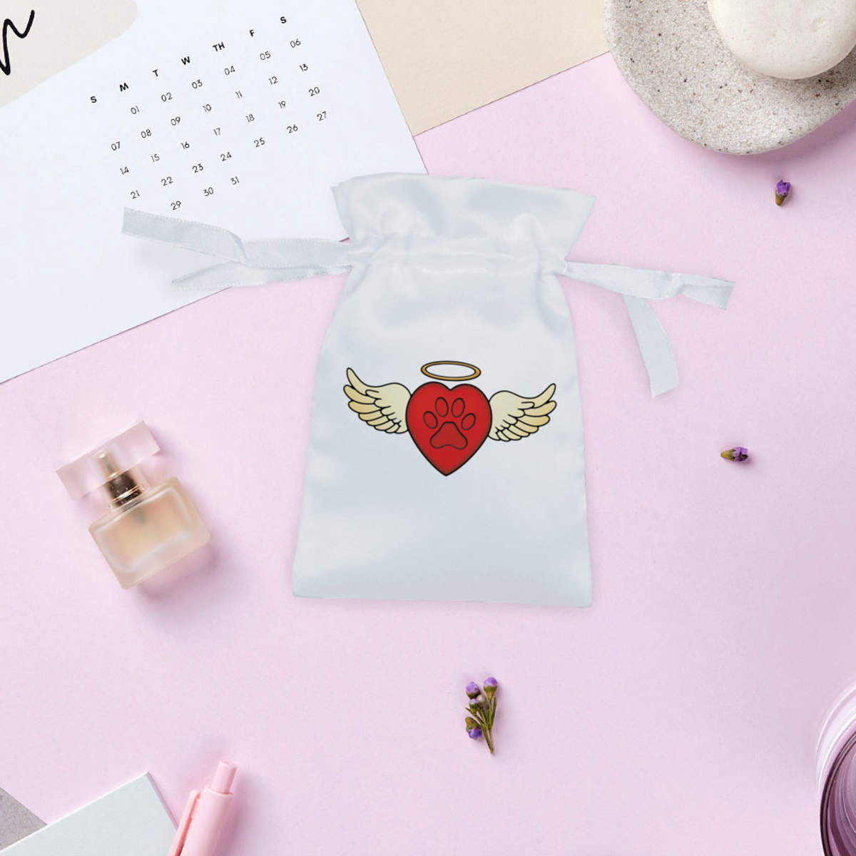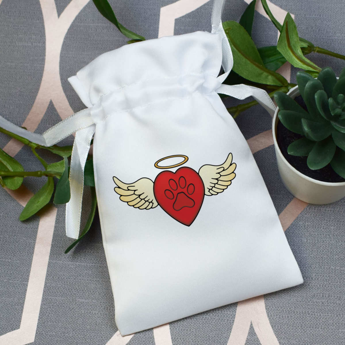 'A paw print heart with angel wings and a halo.'