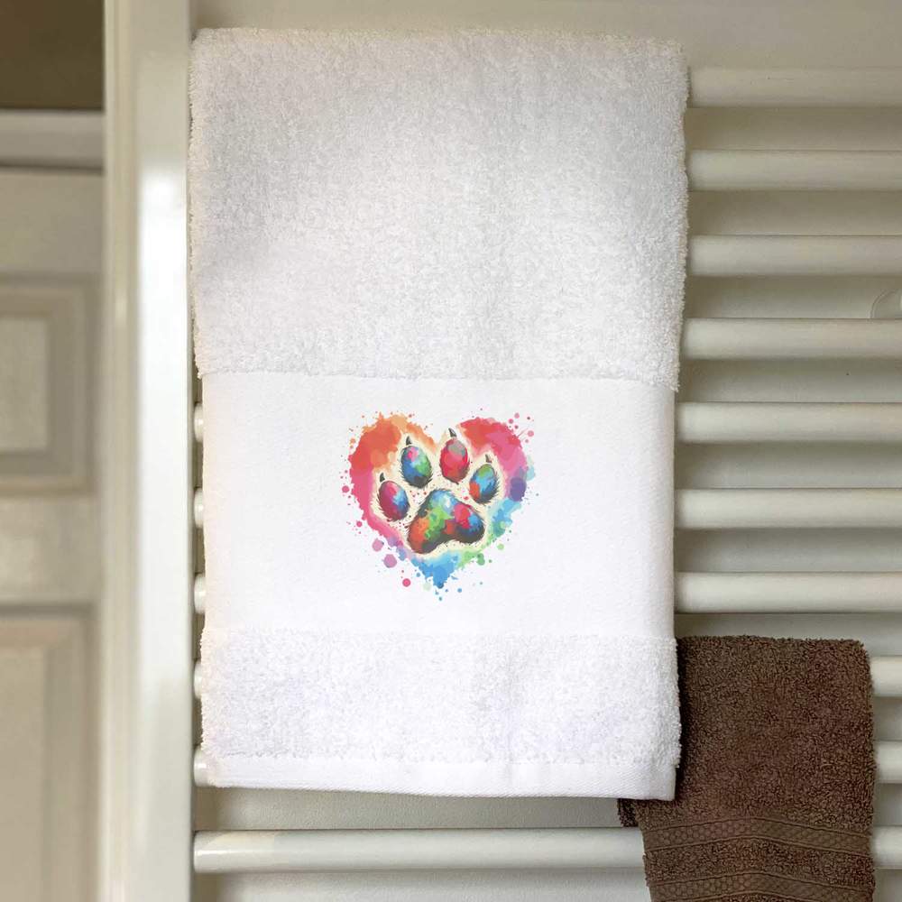'Watercolour Illustration of a Paw Print Love Heart'