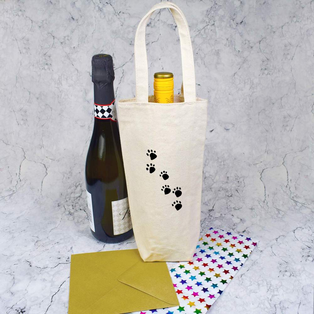'Paw Prints' Cotton Wine Bottle Gift / Travel Bag (BL00025120)