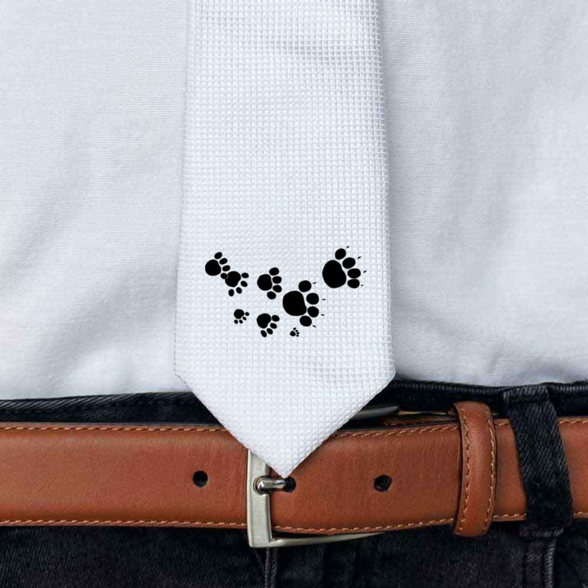 'Paw Prints' White Tie / Necktie with Gift Box (AT00000038)