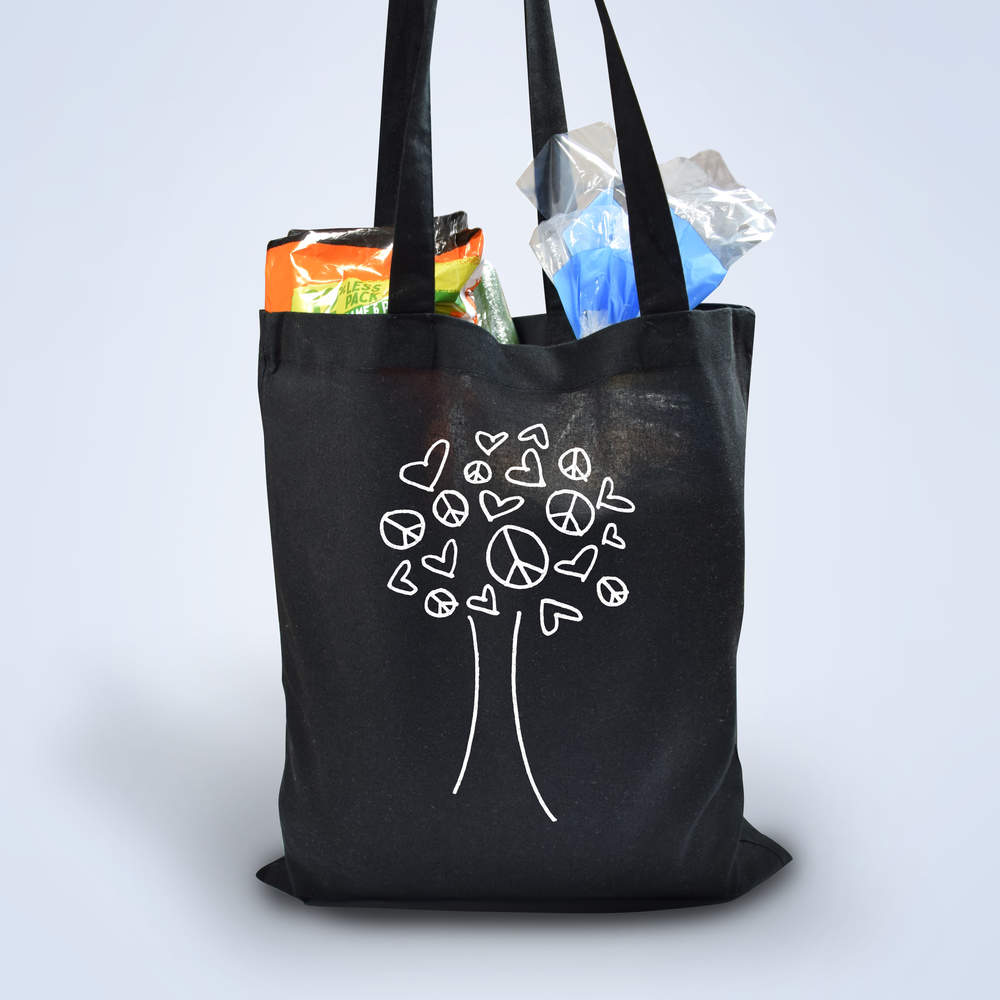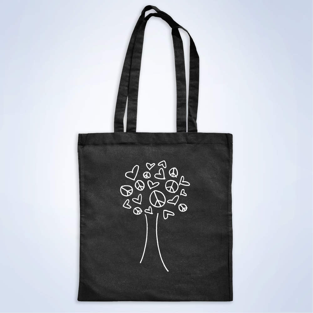 'Peace & Love Tree' Classic Black Tote Shopper Bag (ZB00007592)