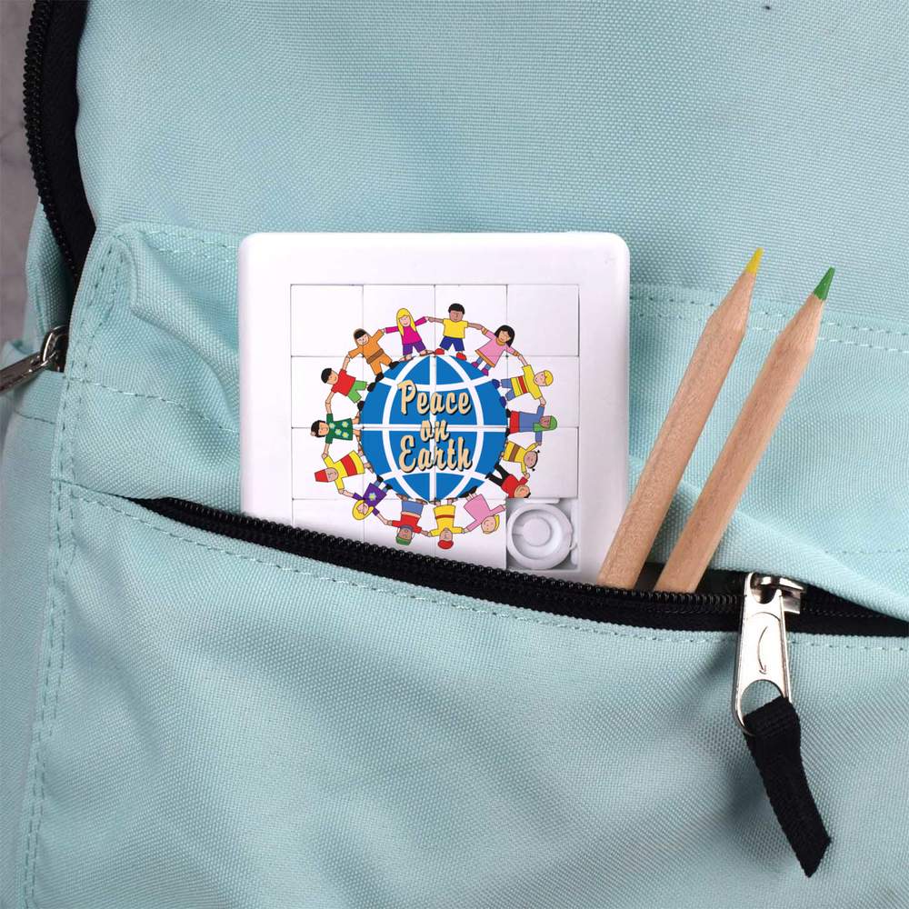 - Pocket sized puzzle with sliding square pieces