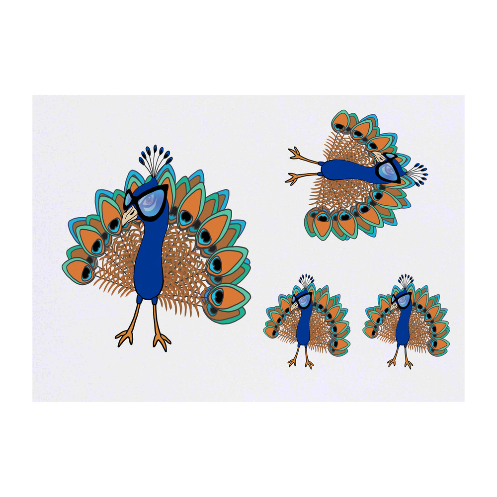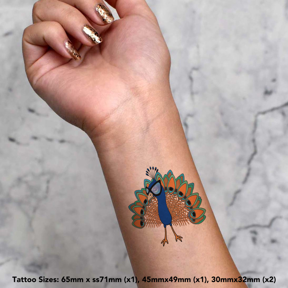 'Peacock In Sunglasses' Temporary Tattoos - Water Resistant, Skin-Safe, Non-Toxic Transfers (TO053843)