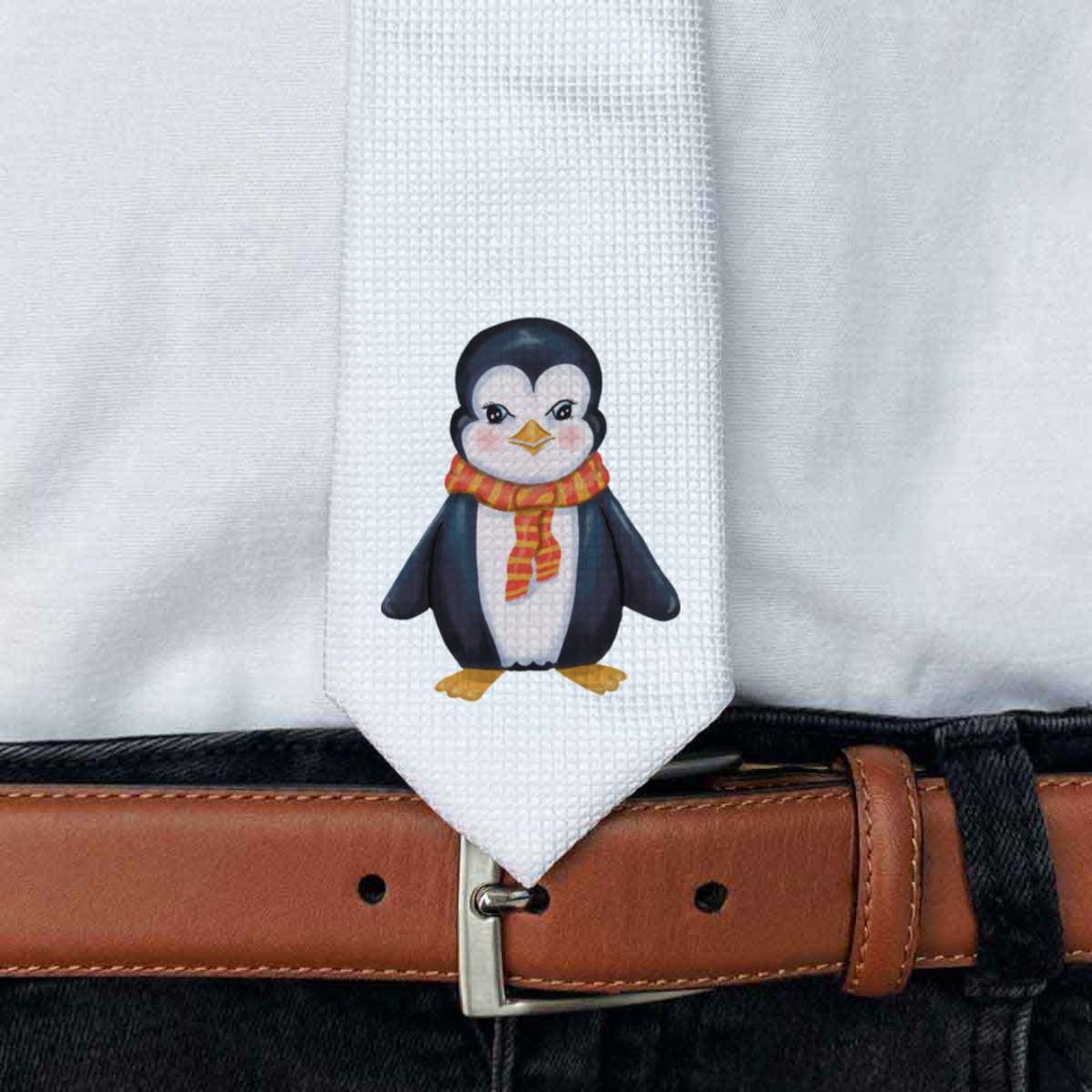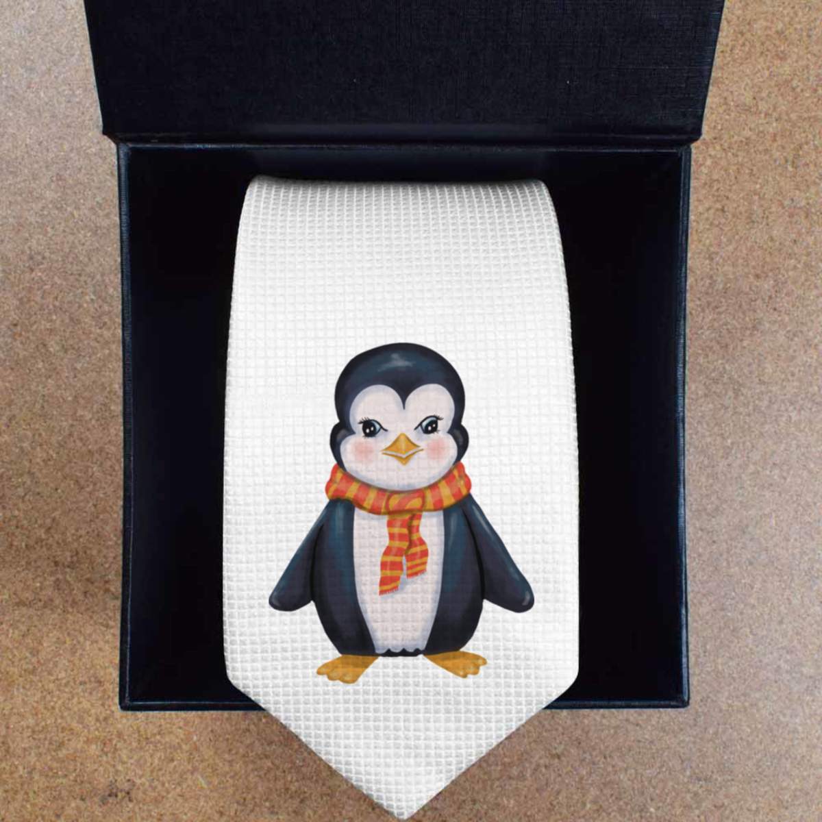 'Penguin With Scarf' White Tie / Necktie with Gift Box (AT00009560)