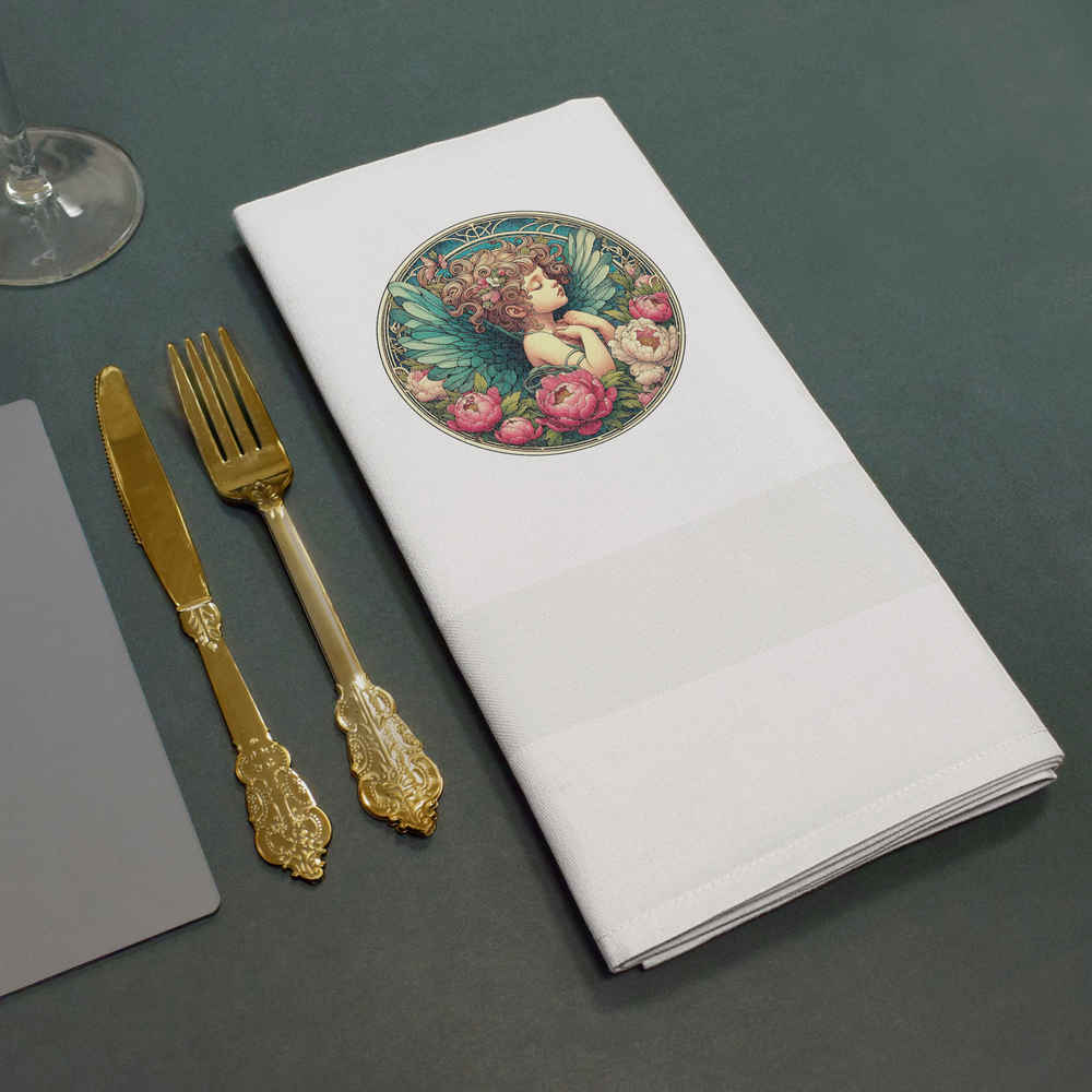 To best display the design, the napkin should be folded into quarters and then halved, as displayed in the product photo.