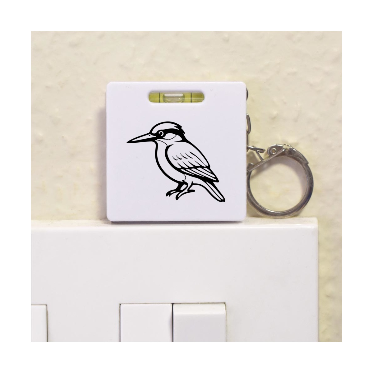 This multifunctional tool offers both a tape measure and spirit level in one handy little accessory. The retractable, 1 metre tape measure has both imperial and metric units, while the flat edges around its plastic casing provide the ability to check both vertical and horizontal surfaces with a mini spirit level. The compact and lightweight design makes it easy to carry around; simply attach with the keychain provided and whip it out when needed. Each keyring tape measure tool is printed on one side with a unique design.