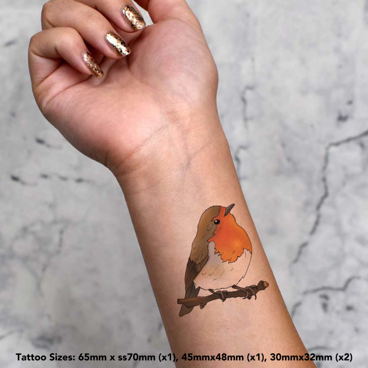 'Perched Robin Bird' Temporary Tattoos - Water Resistant, Skin-Safe, Non-Toxic Transfers (TO054543)