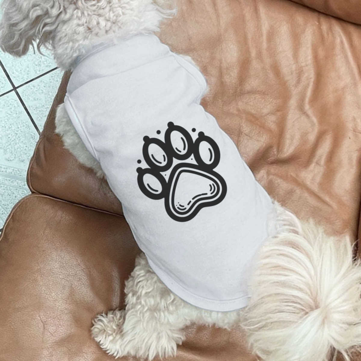 Give your furry friend a fresh new look with this adorable white dog T-shirt, designed to turn heads with its unique print on the back! Made from 100% polyester, it offers a comfortable yet firm stretch, perfect for both playtime adventures and cozy cuddles. Whether your dog loves to play outdoors or cuddle indoors, this T-shirt provides all-day comfort and style.