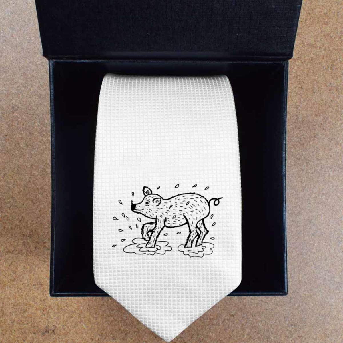 'Pig in Mud' White Tie / Necktie with Gift Box (AT00011444)