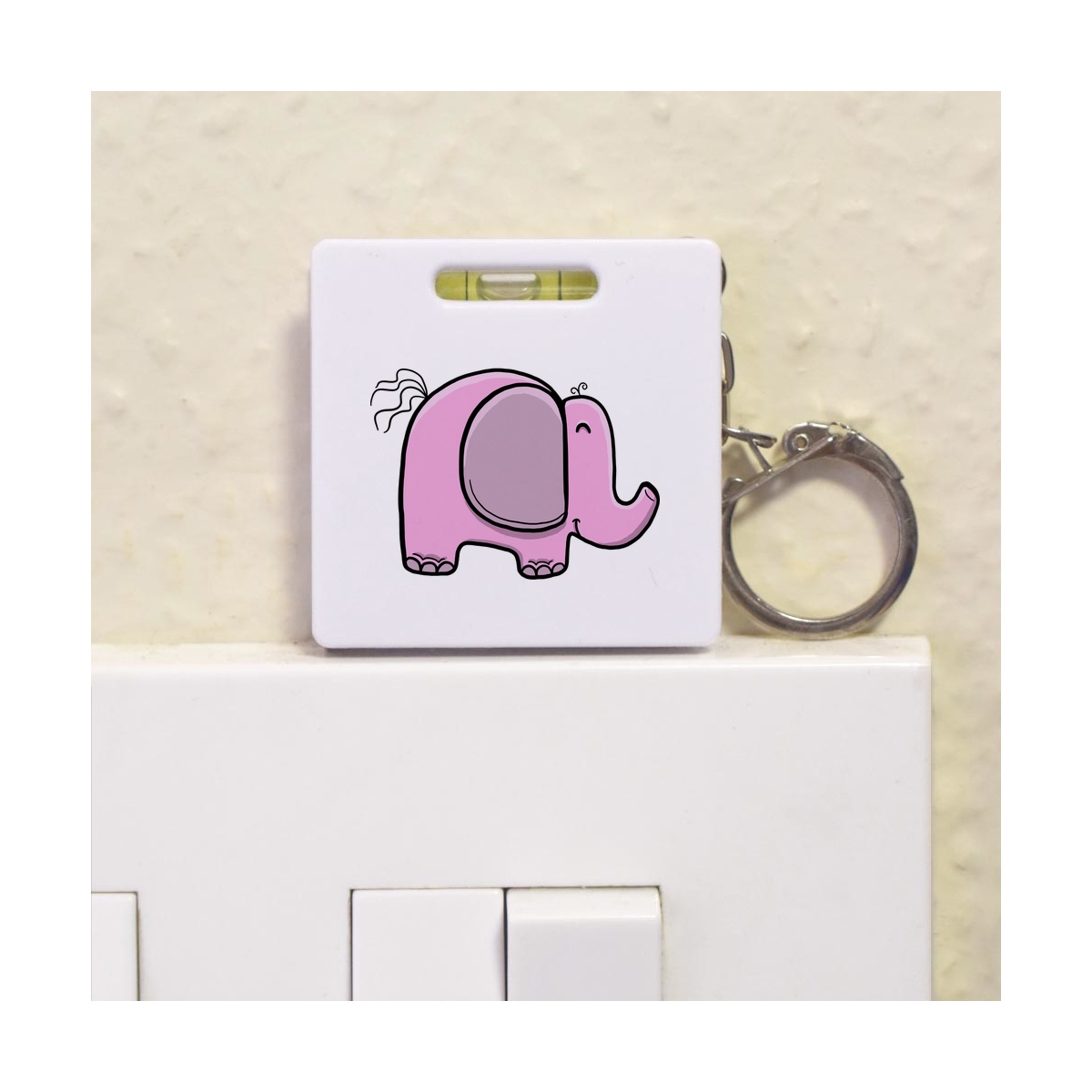 This multifunctional tool offers both a tape measure and spirit level in one handy little accessory. The retractable, 1 metre tape measure has both imperial and metric units, while the flat edges around its plastic casing provide the ability to check both vertical and horizontal surfaces with a mini spirit level. The compact and lightweight design makes it easy to carry around; simply attach with the keychain provided and whip it out when needed. Each keyring tape measure tool is printed on one side with a unique design.
