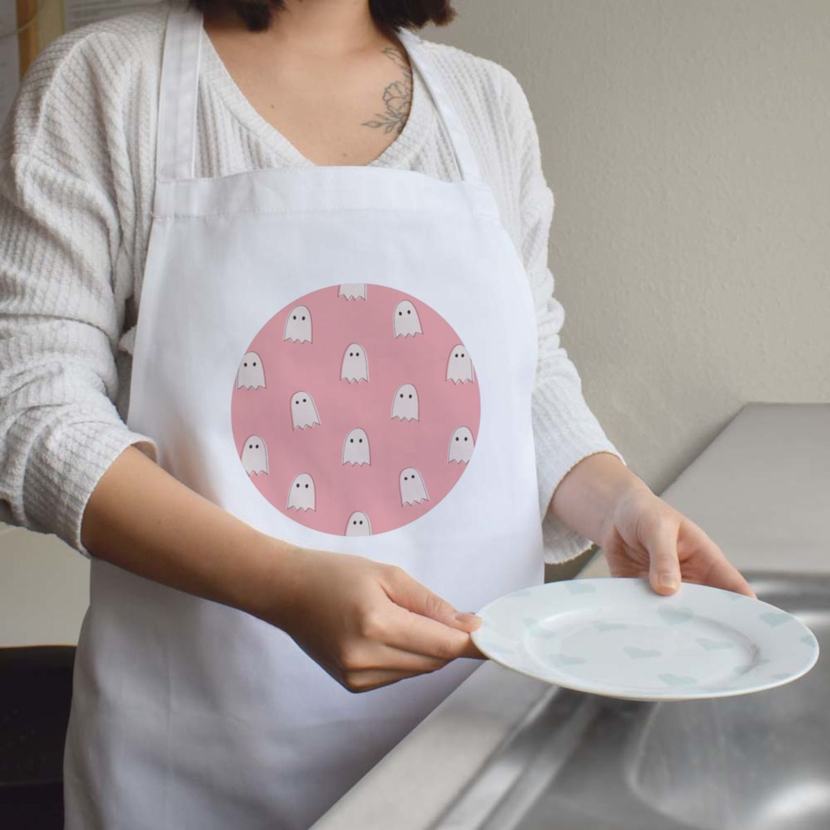 'Pink Ghost Pattern' Unisex Cooking Apron (AP00083520)