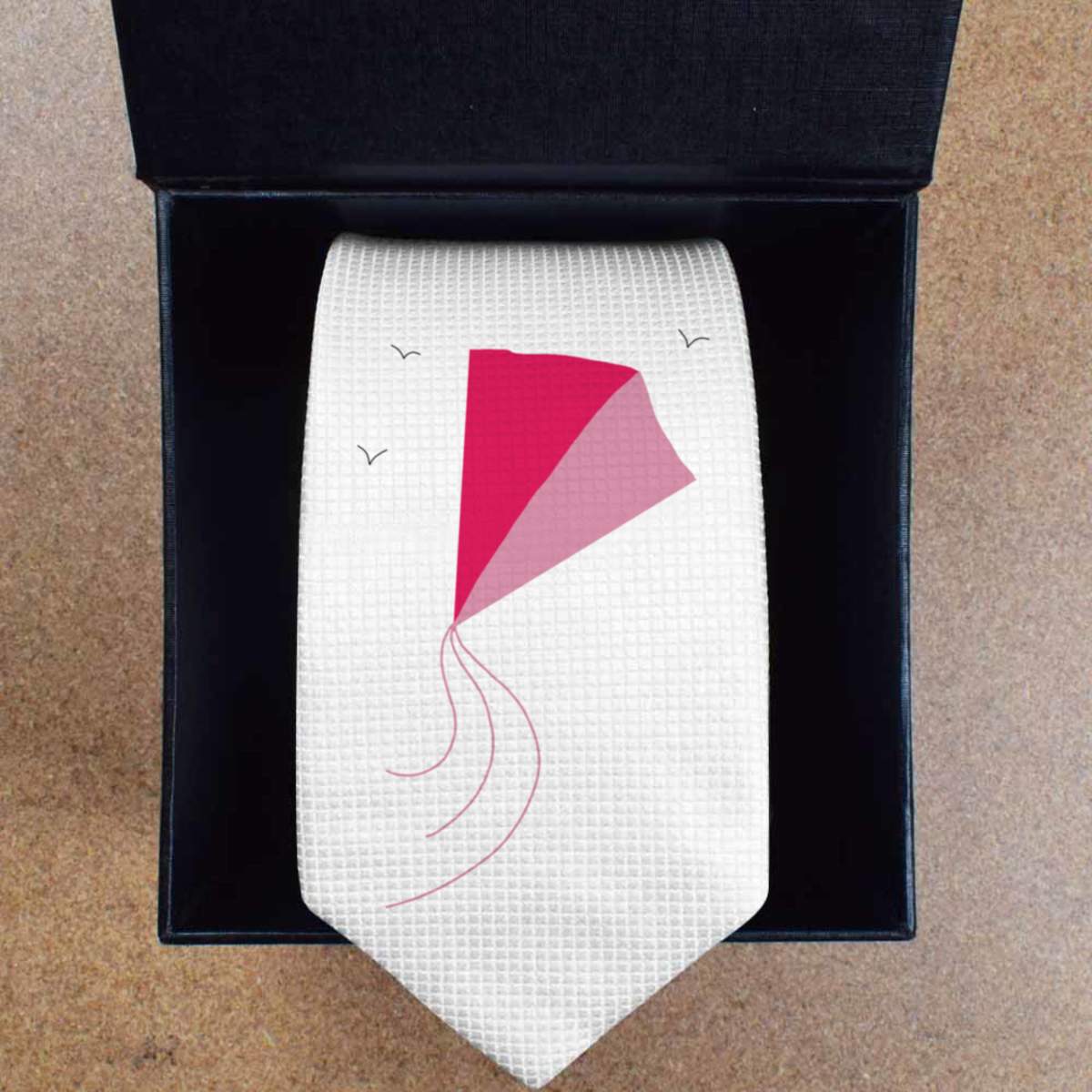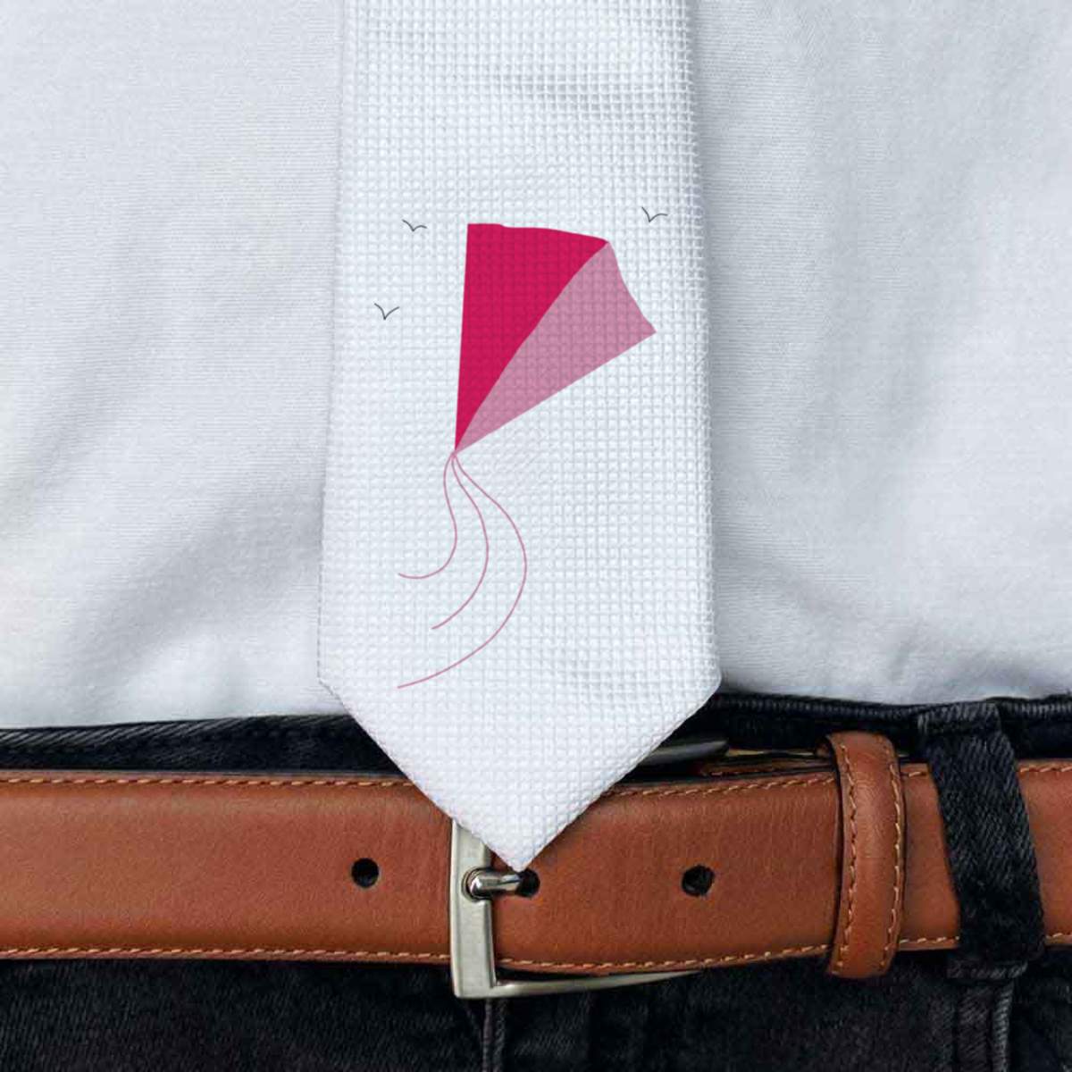 This stylish slim white tie is guaranteed to add class to any outfit. Printed on the front with a design from one of our talented designers, these ties are perfect for formal events, special occasions or making a statement at the office.