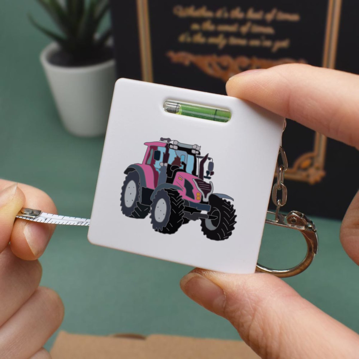 This multifunctional tool offers both a tape measure and spirit level in one handy little accessory. The retractable, 1 metre tape measure has both imperial and metric units, while the flat edges around its plastic casing provide the ability to check both vertical and horizontal surfaces with a mini spirit level. The compact and lightweight design makes it easy to carry around; simply attach with the keychain provided and whip it out when needed. Each keyring tape measure tool is printed on one side with a unique design.