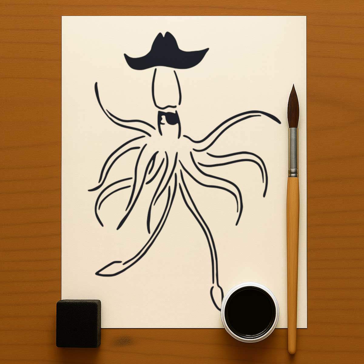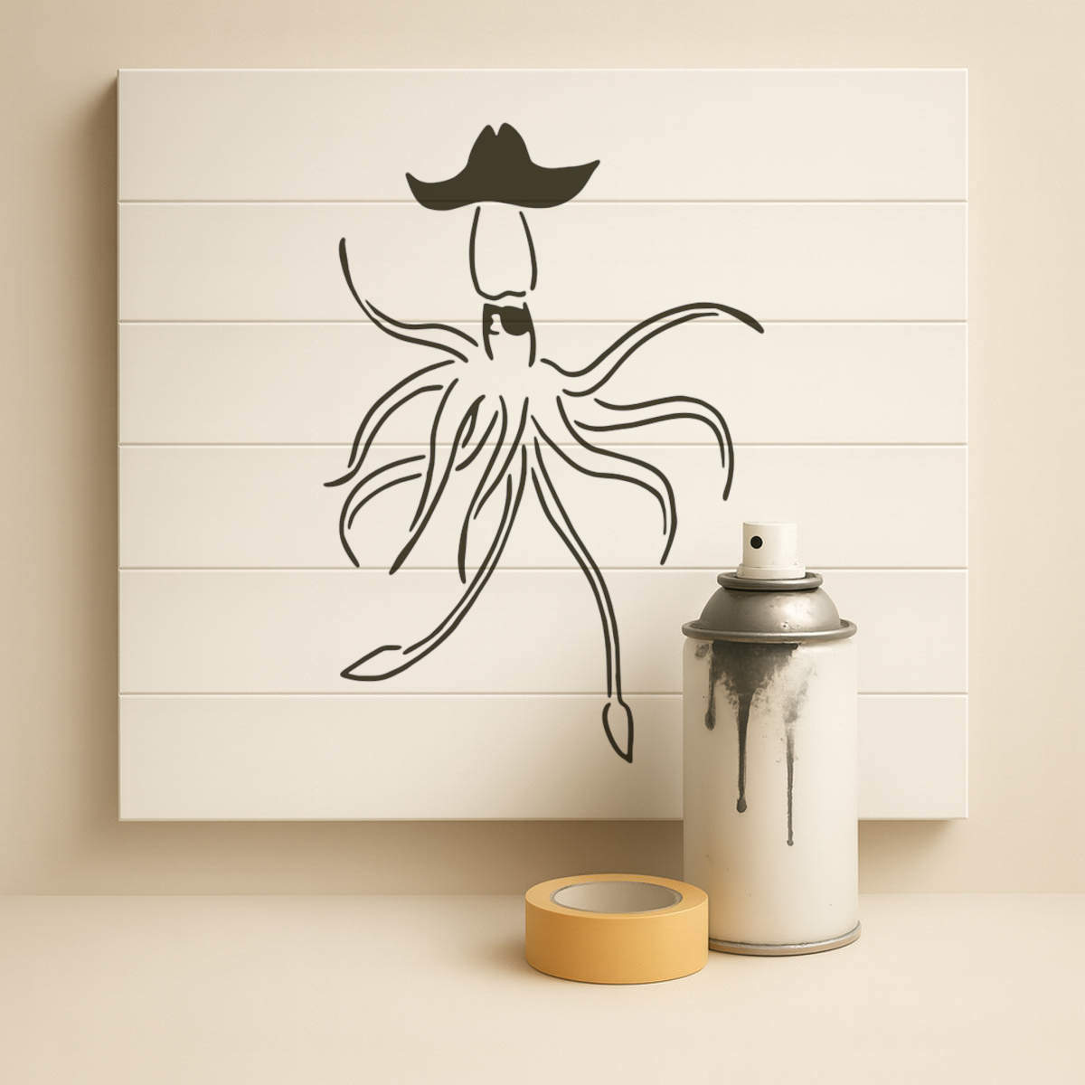 'Pirate Squid' Reusable Stencil – Durable Decorative Template for Painting and Spraying on Walls, Tiles, Wood, Fabric & Craft Projects - M (A5) (WS00022556)