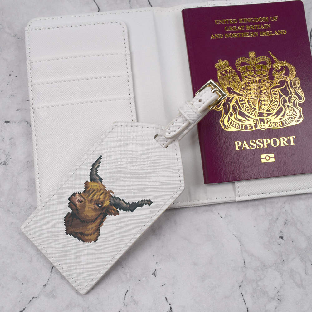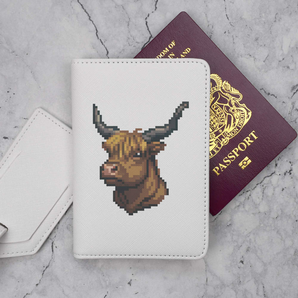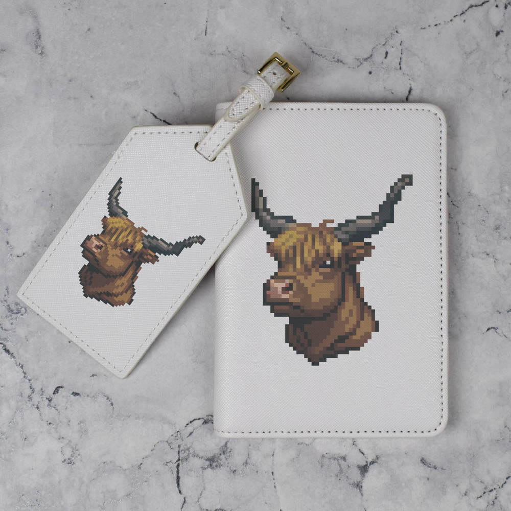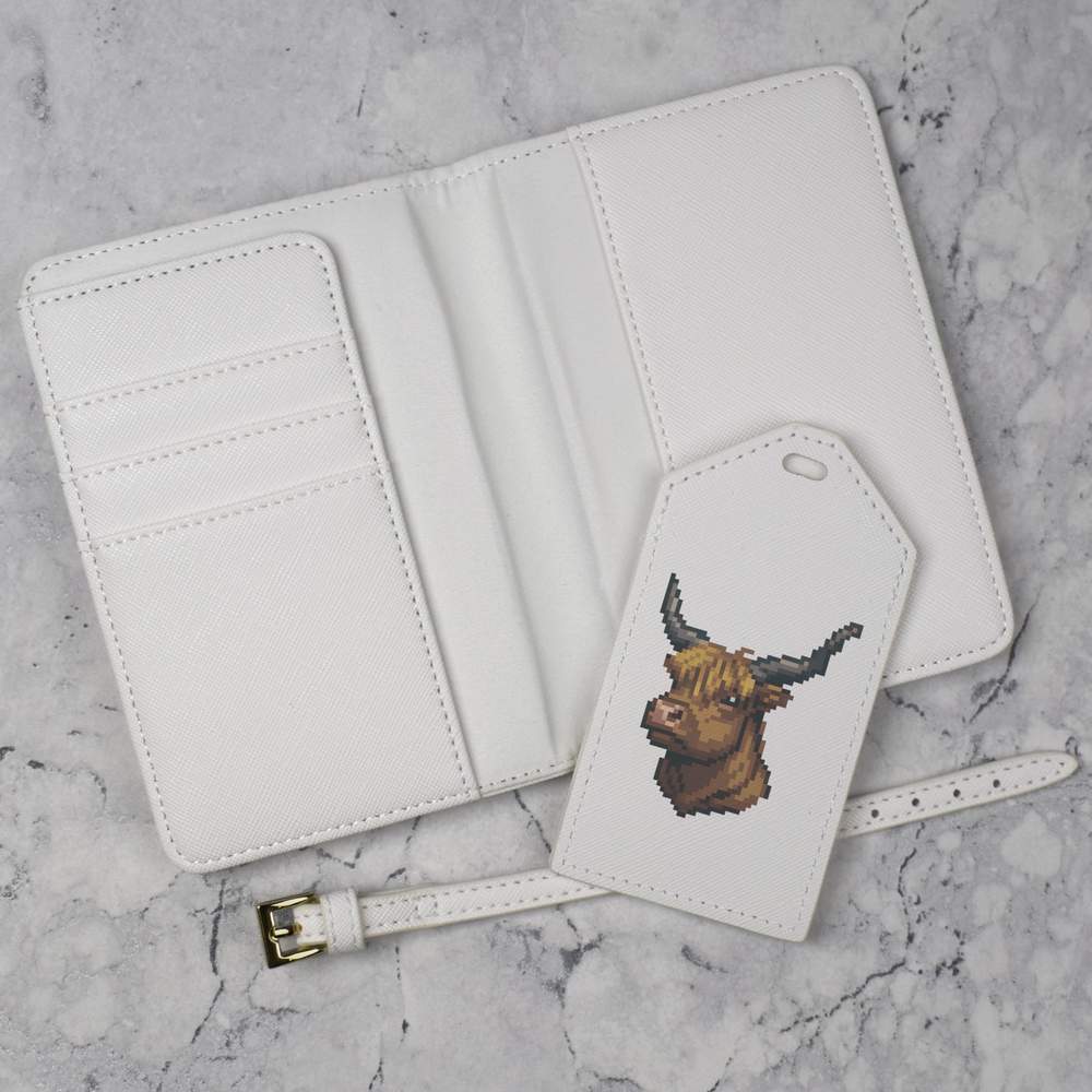 'Pixel Art Highland Cow' Passport Cover & Luggage Tag Travel Set (PA00026369)