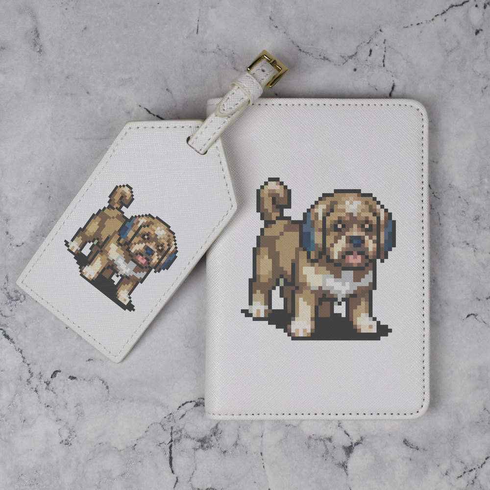 'Pixel Art Lhasa Apso Dog' Passport Cover & Luggage Tag Travel Set (PA00026469)
