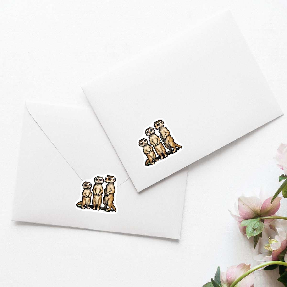 'Pixel Art Meerkat Family' Premium Vinyl Decal Stickers – Waterproof, Durable & Easy to Apply - Ideal for Cars, Windows, Bins and More (DW043958)