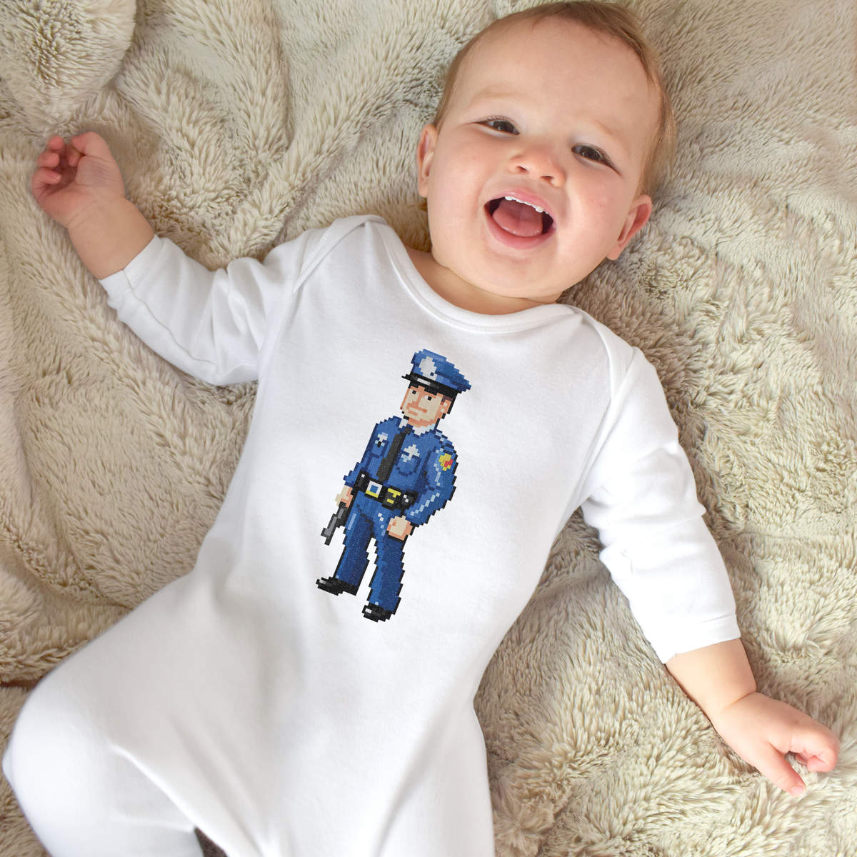 'Pixel Art Police Officer' Baby Romper Jumpsuits / Sleep suits (SS043862)