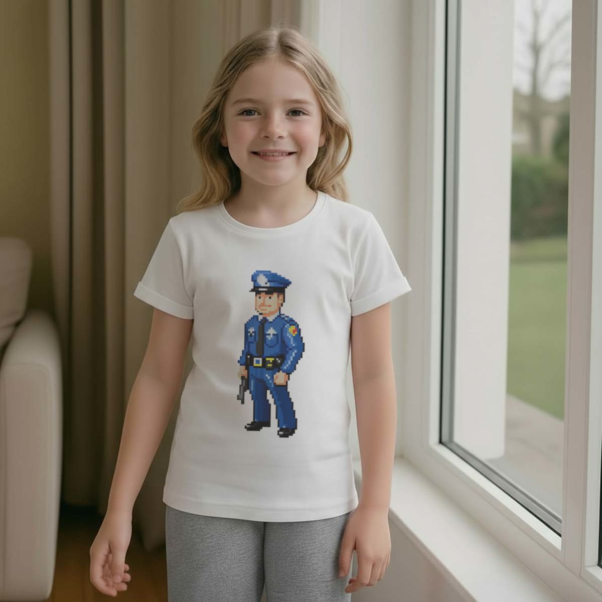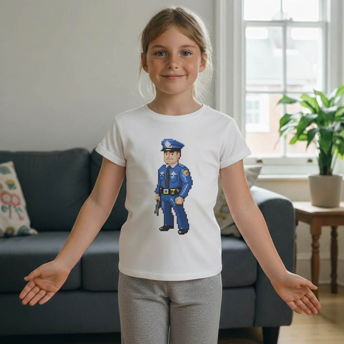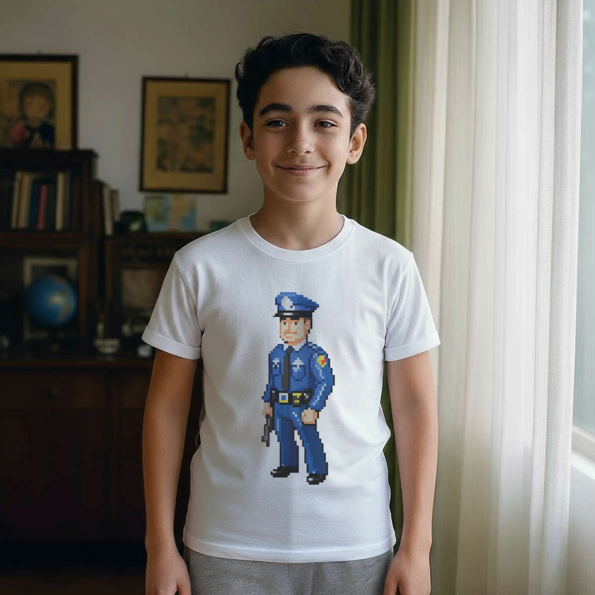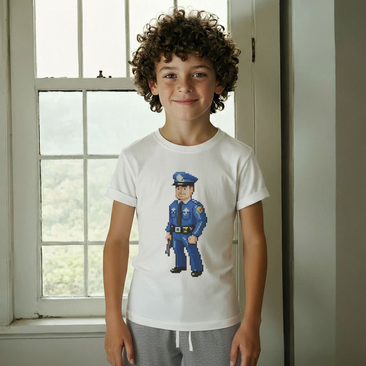 'Pixel Art Police Officer' Kids Cotton Pyjama Set – Comfortable Children's Nightwear, Sleepwear and Loungewear - Unisex for Boys and Girls - Grey, 11-13 Years (KP00164767)