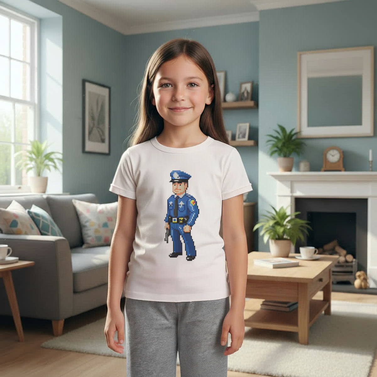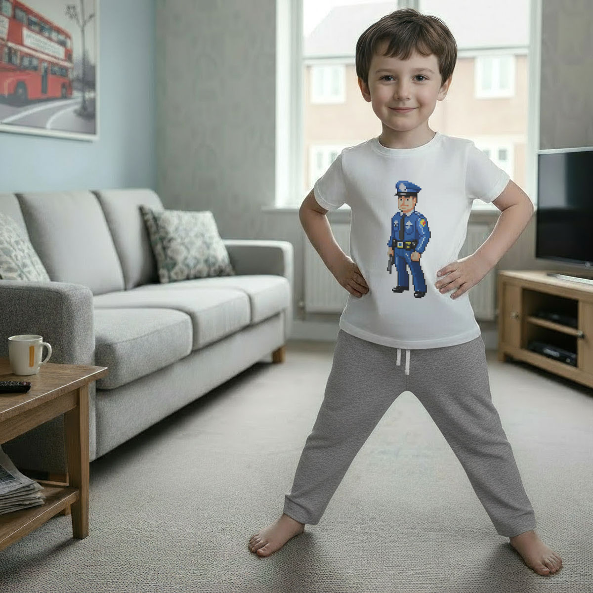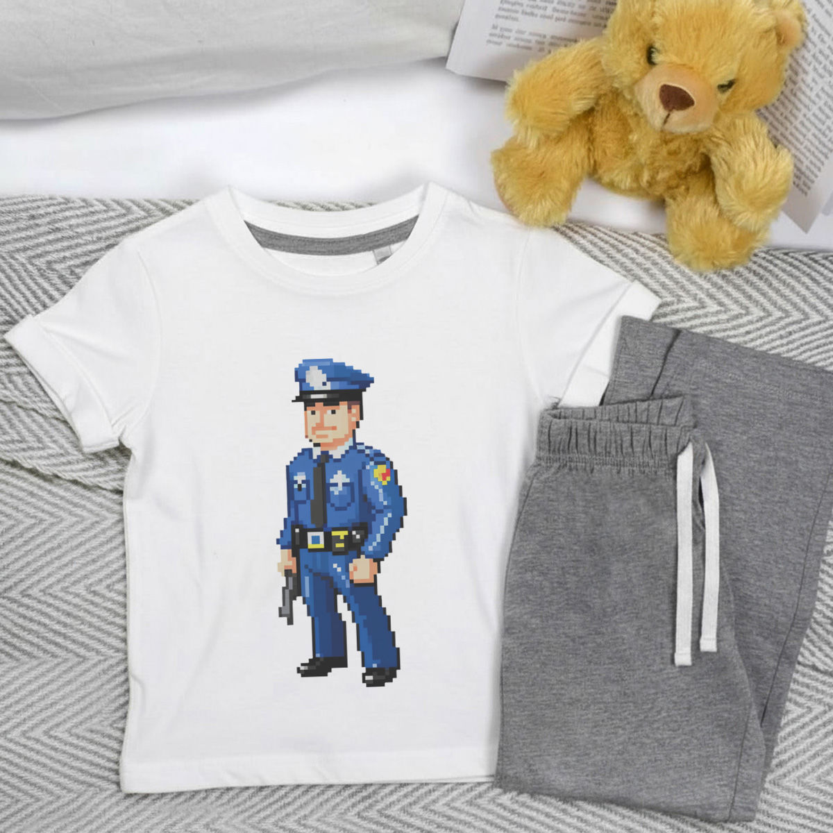 'Pixel Art Police Officer' Kids Cotton Pyjama Set – Comfortable Children's Nightwear, Sleepwear and Loungewear - Unisex for Boys and Girls - Grey, 5-6 Years (KP00140802)