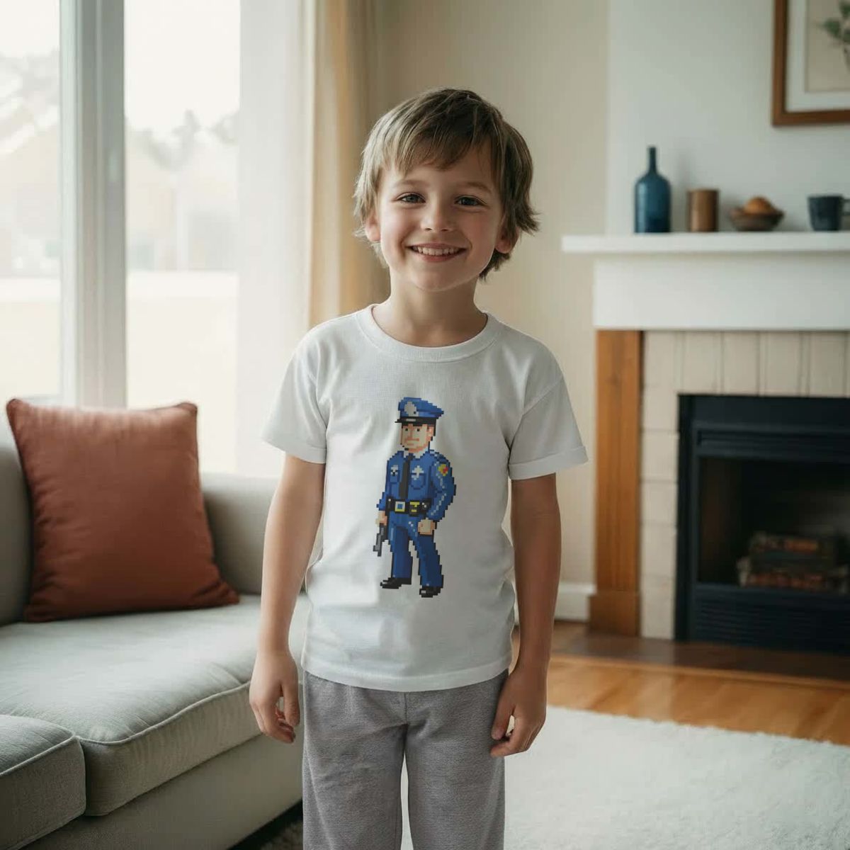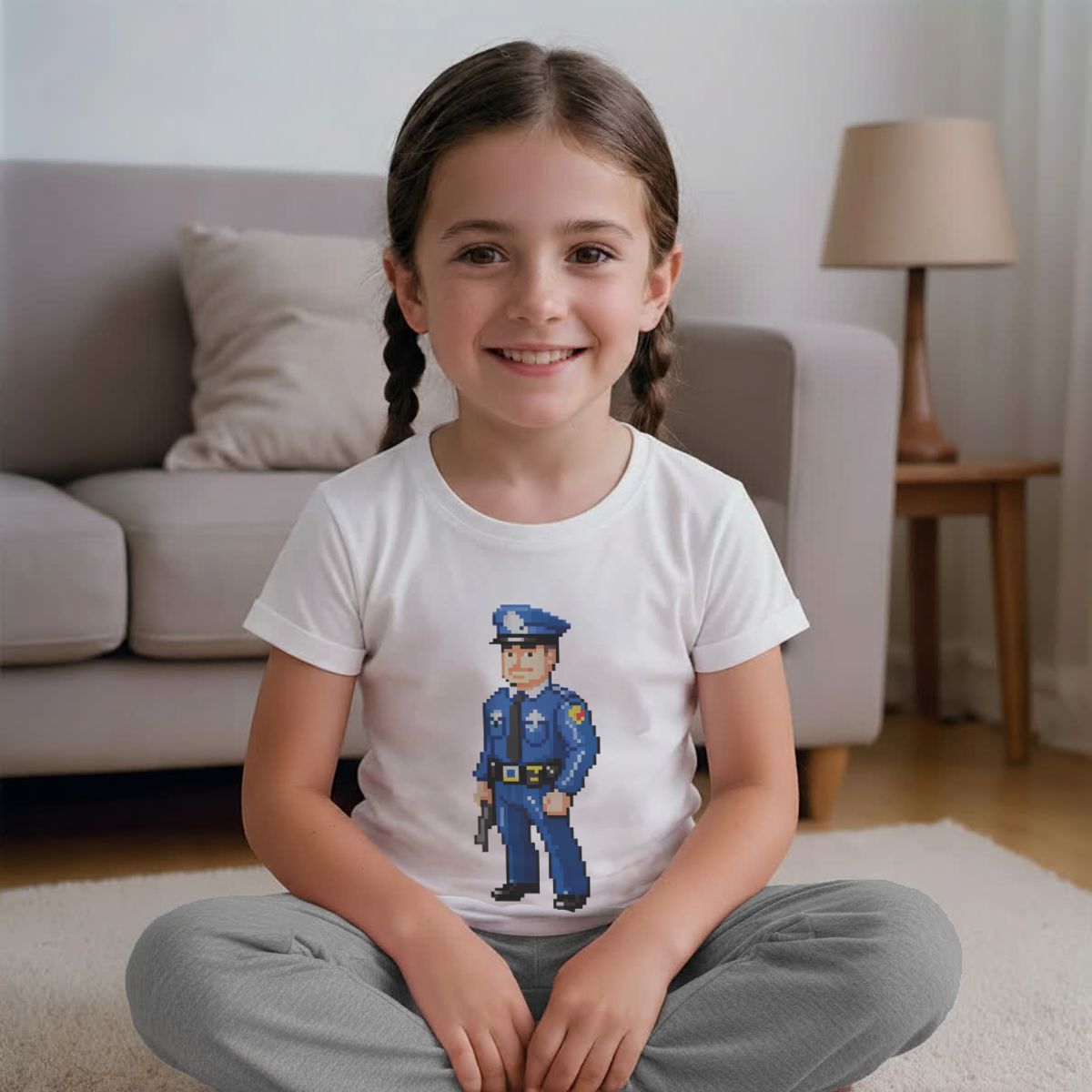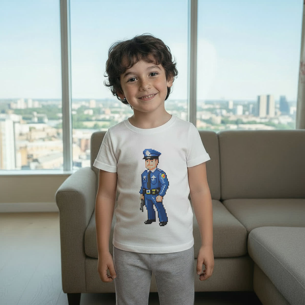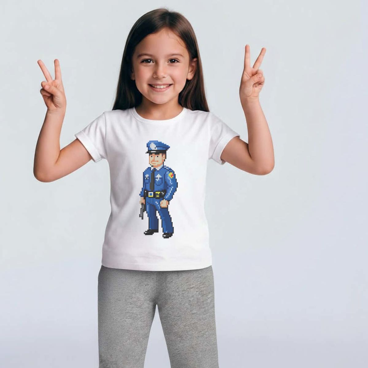 'Pixel Art Police Officer' Kids Cotton Pyjama Set – Comfortable Children's Nightwear, Sleepwear and Loungewear - Unisex for Boys and Girls - Grey, 5-6 Years (KP00140802)
