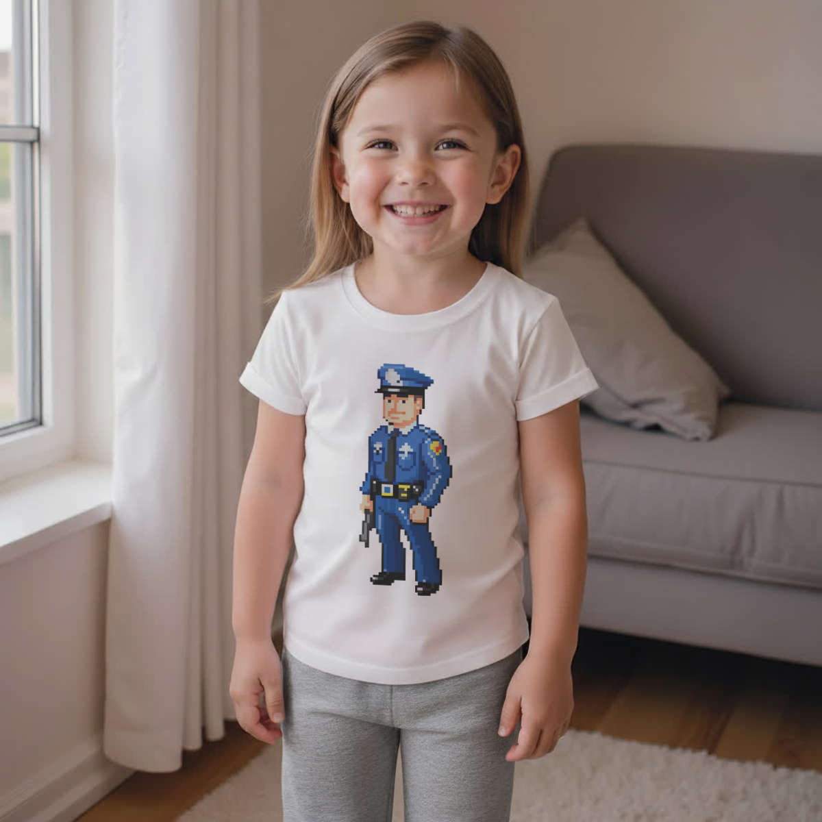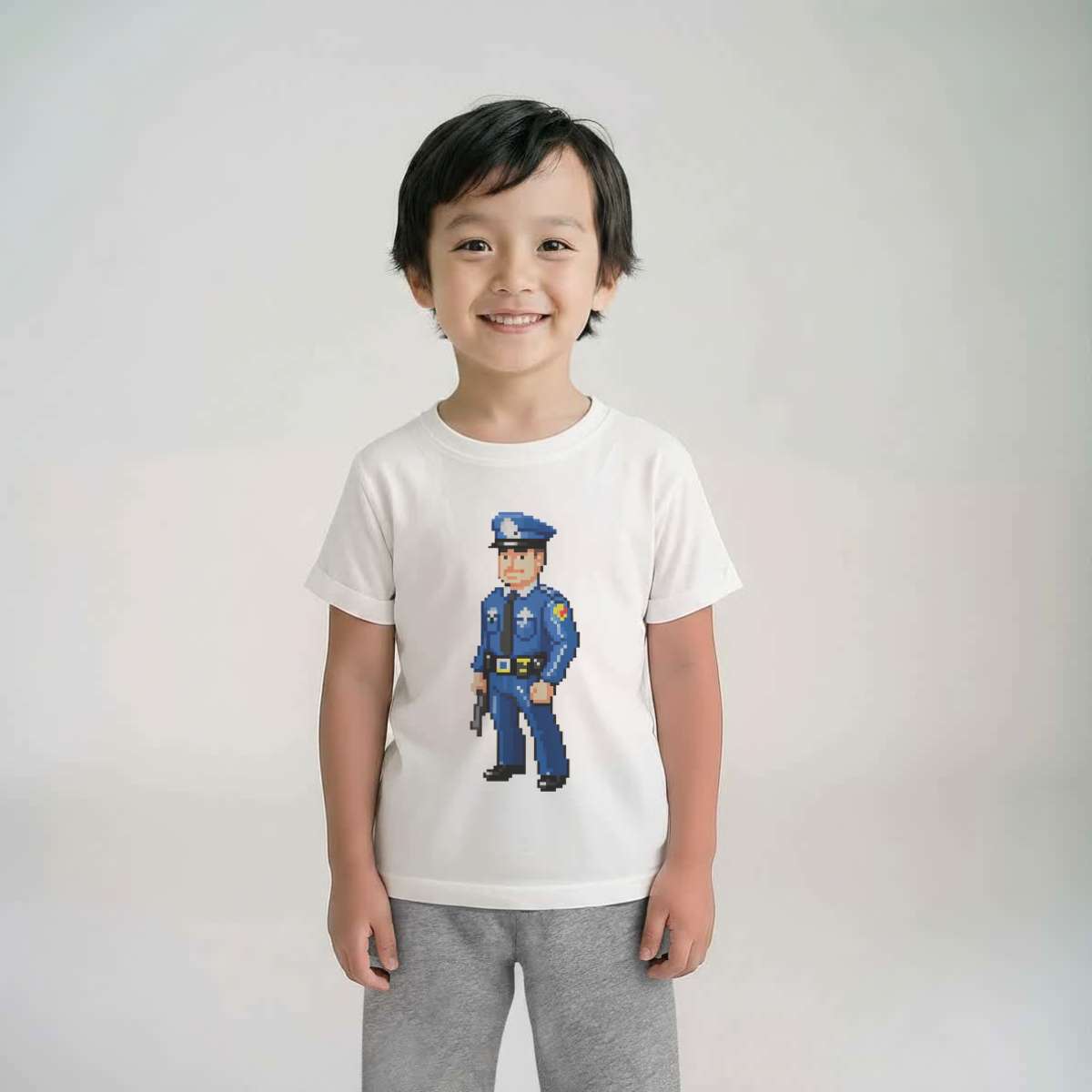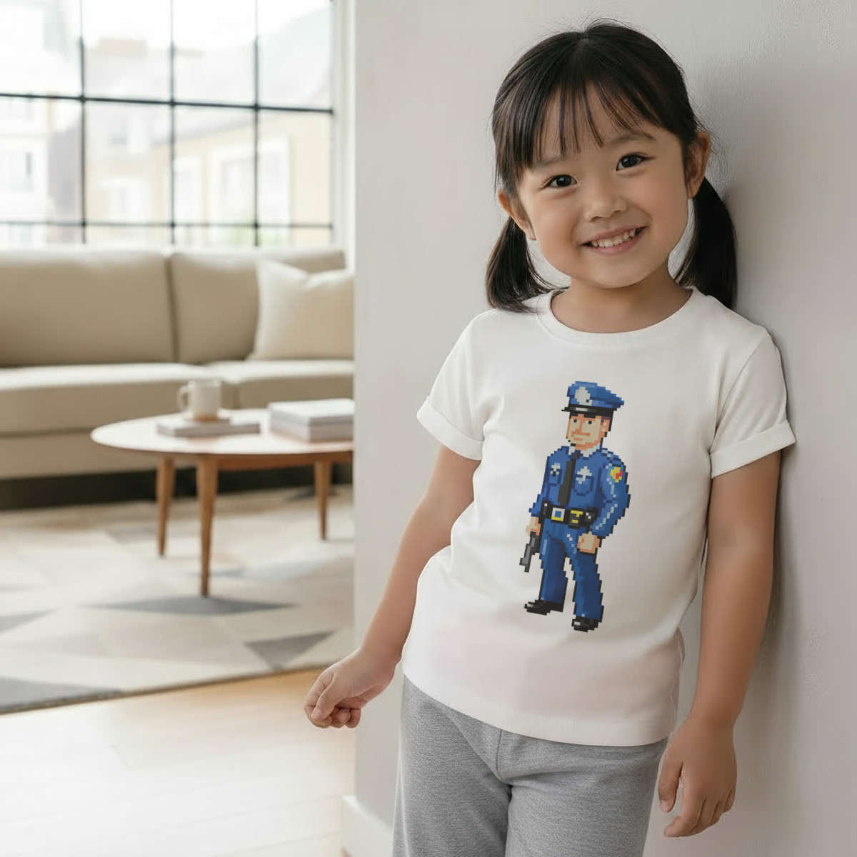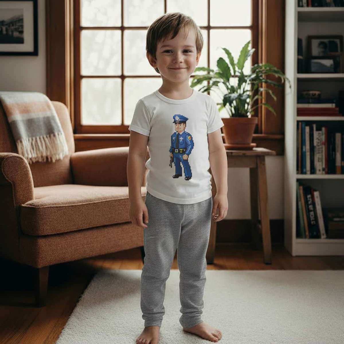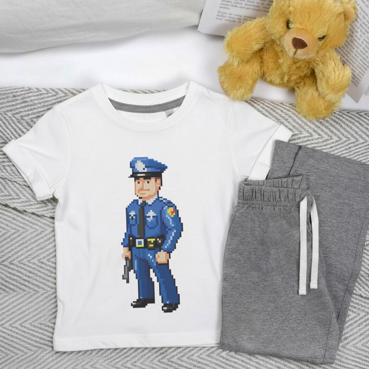'Pixel Art Police Officer' Kids Cotton Pyjama Set – Comfortable Children's Nightwear, Sleepwear and Loungewear - Unisex for Boys and Girls – Grey (KP043862)