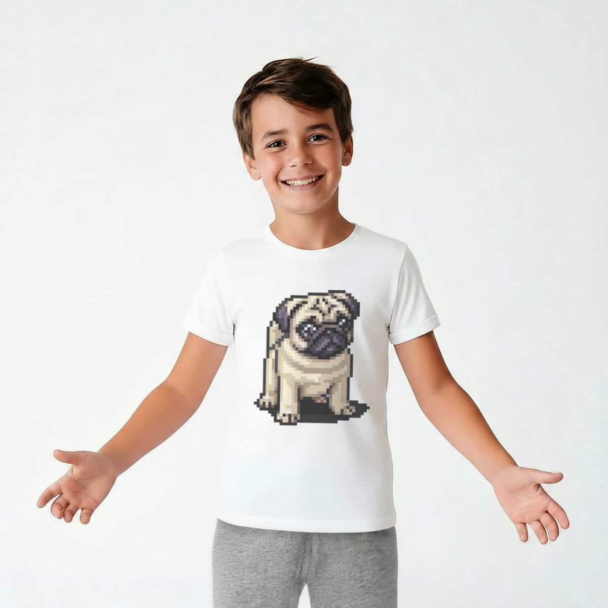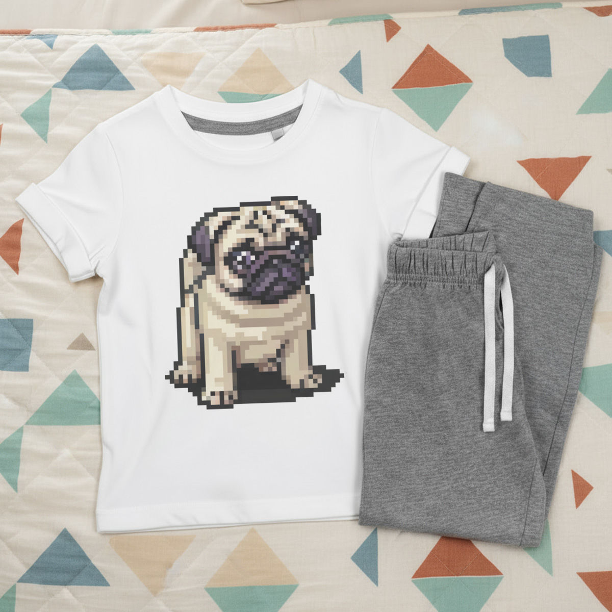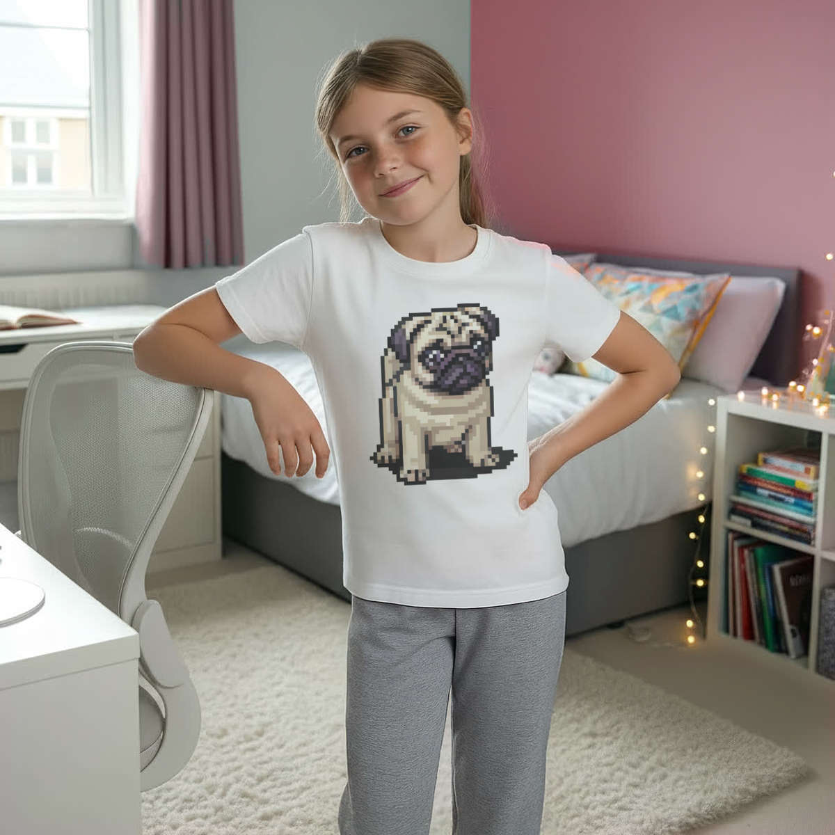 'Pixel Art Pug Puppy' Kids Cotton Pyjama Set – Comfortable Children's Nightwear, Sleepwear and Loungewear - Unisex for Boys and Girls - Grey, 11-13 Years (KP00165391)