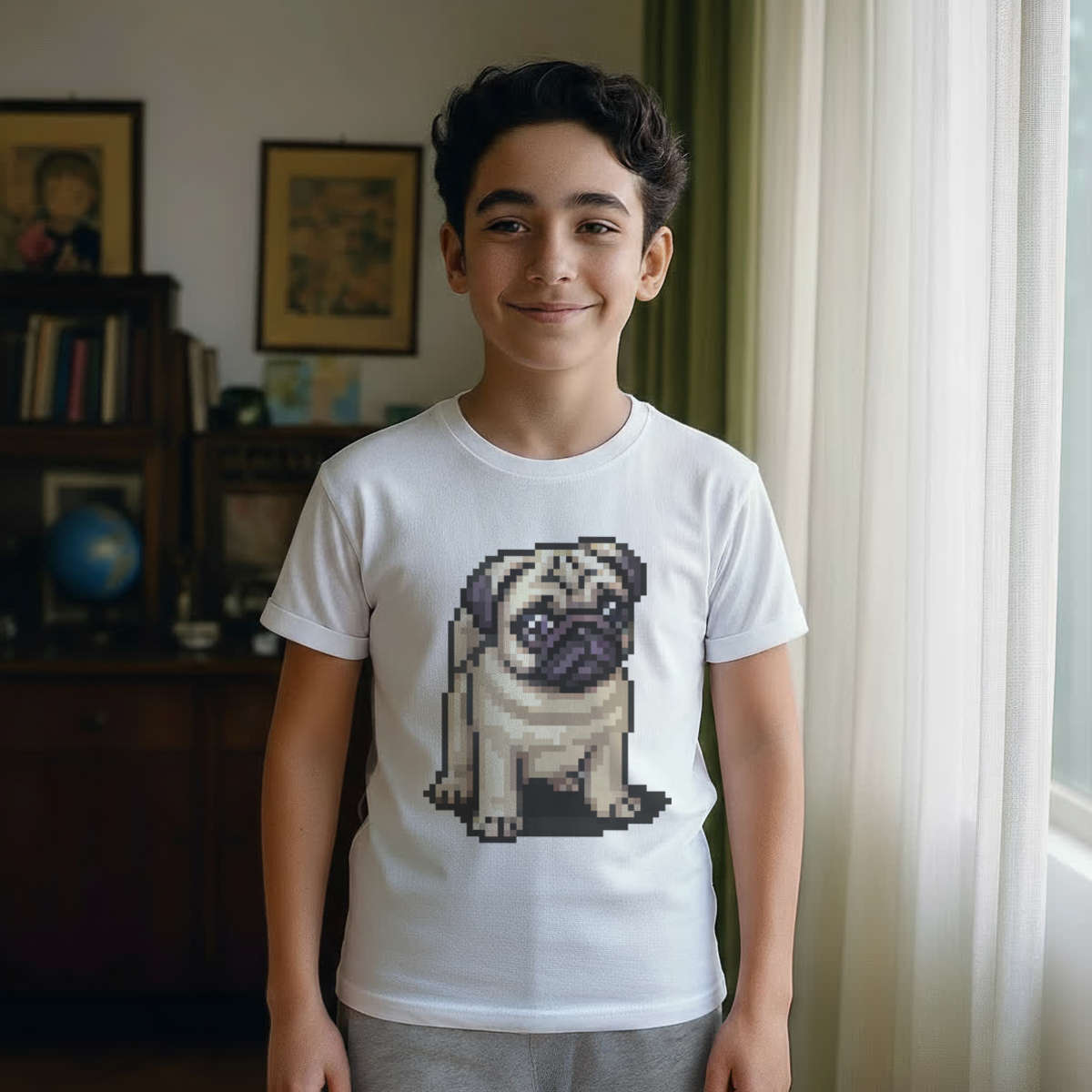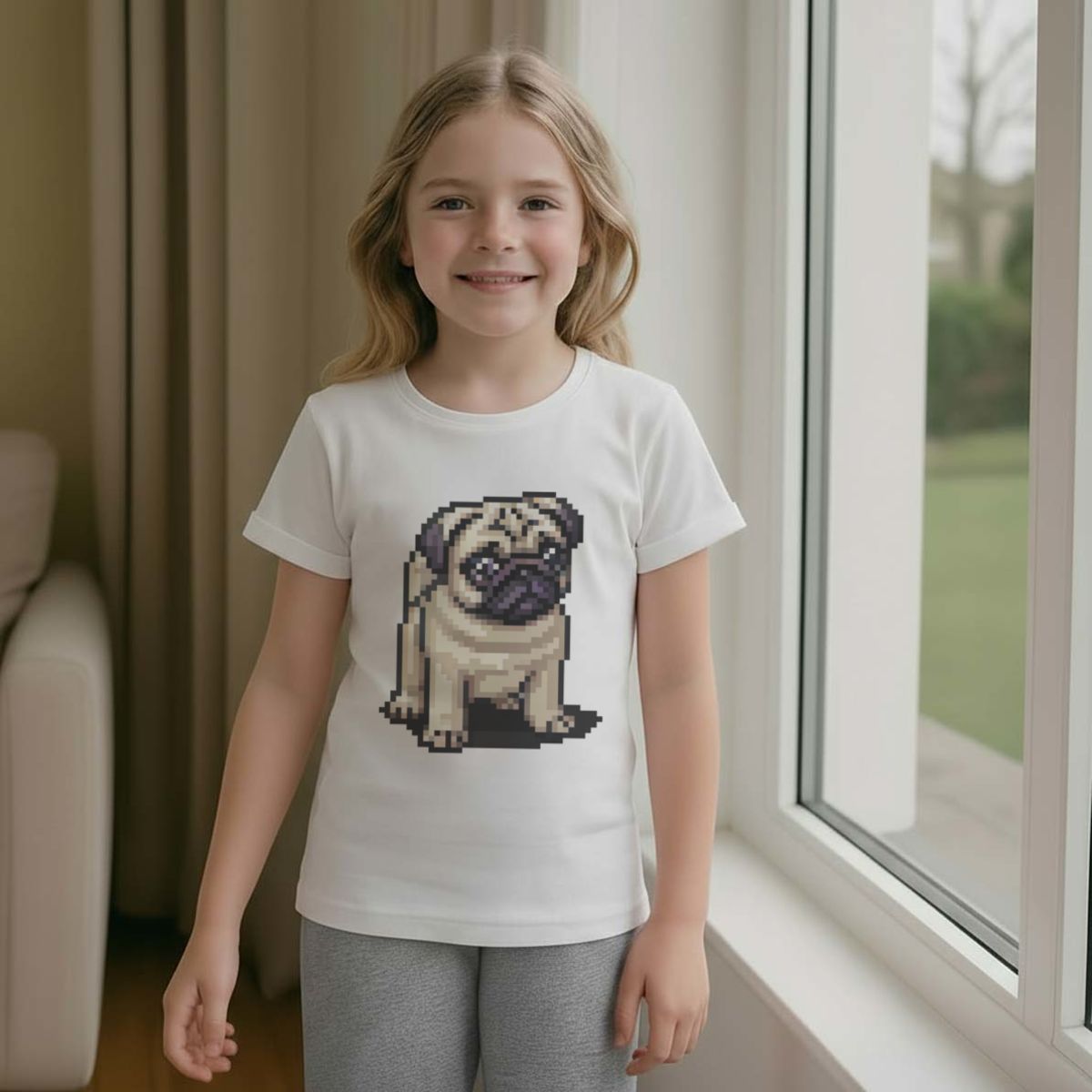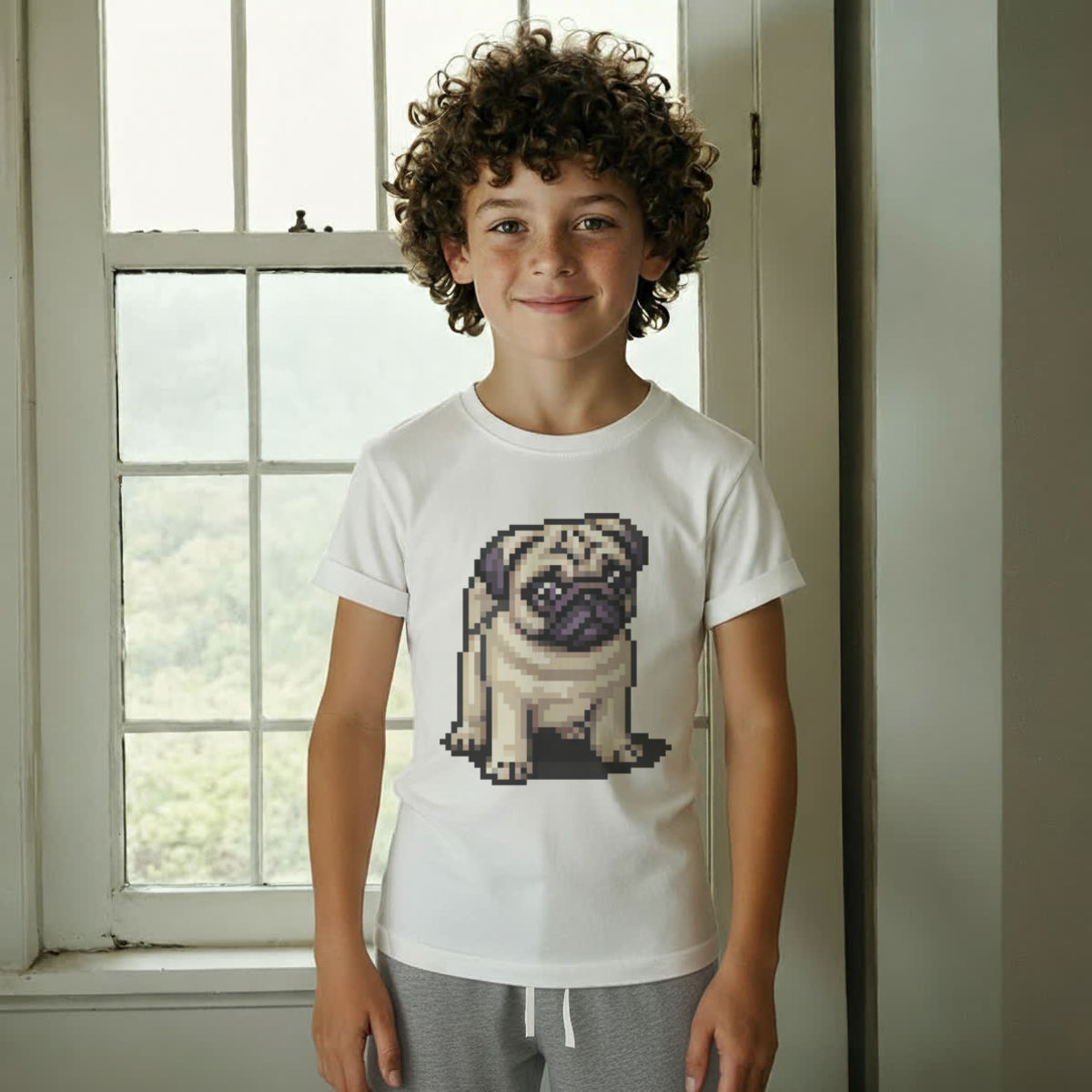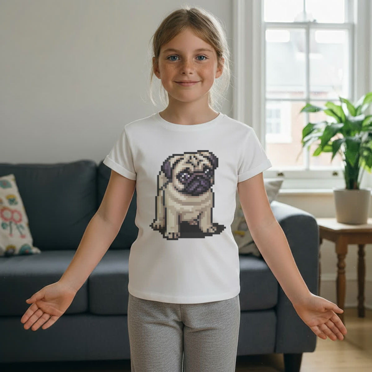 'Pixel Art Pug Puppy' Kids Cotton Pyjama Set – Comfortable Children's Nightwear, Sleepwear and Loungewear - Unisex for Boys and Girls - Grey, 11-13 Years (KP00165391)