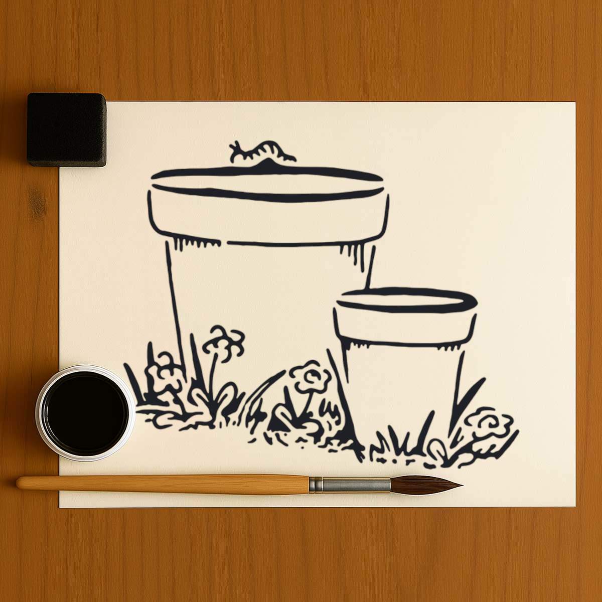 'Plant Pots' Reusable Stencil – Durable Decorative Template for Painting and Spraying on Walls, Tiles, Wood, Fabric & Craft Projects - M (A5) (WS00010703)