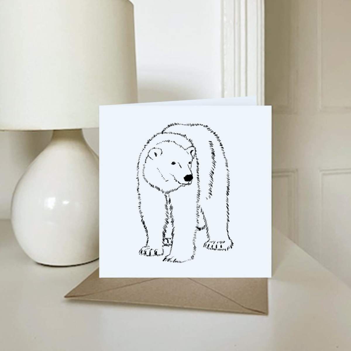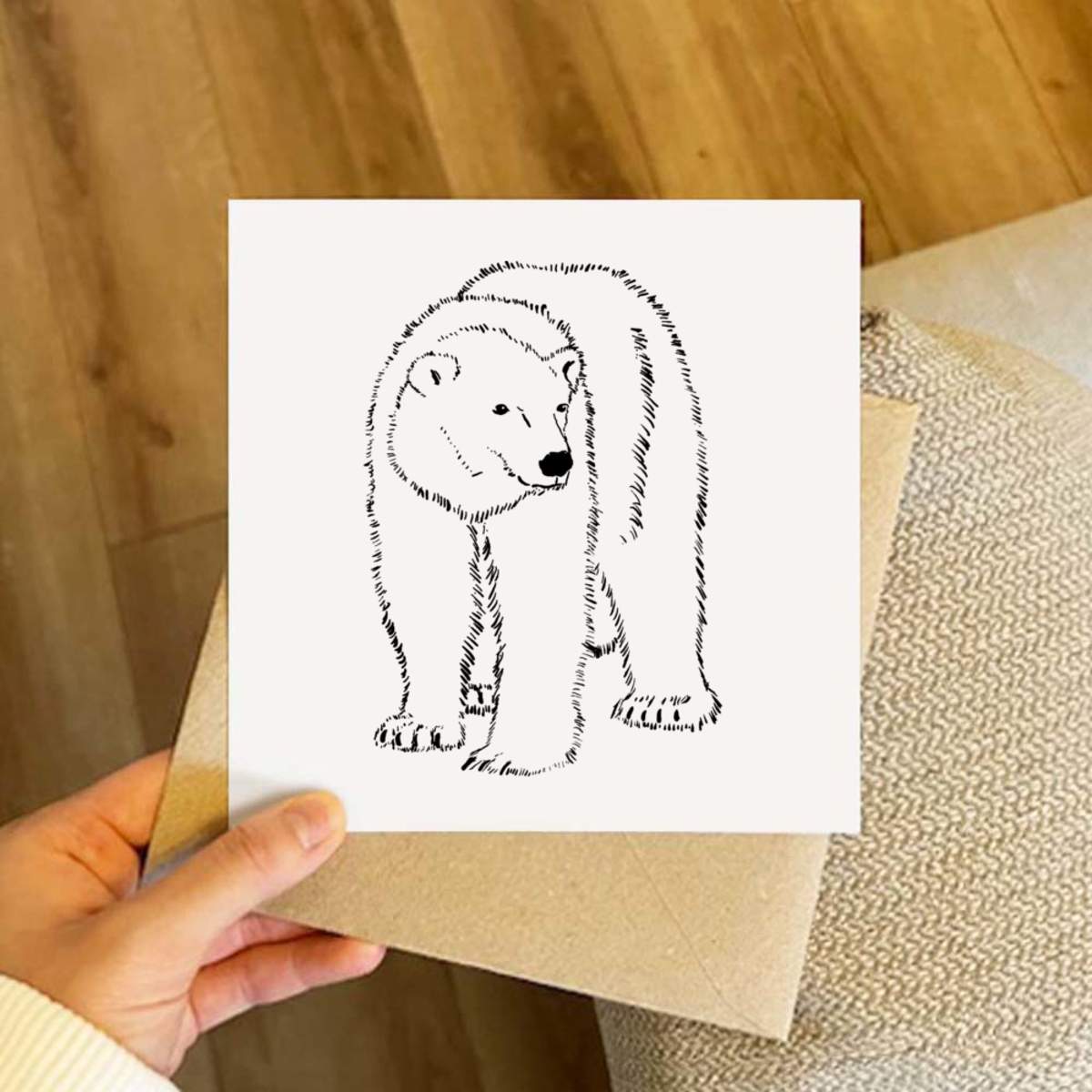 - Square greeting card supplied with a recycled brown envelope