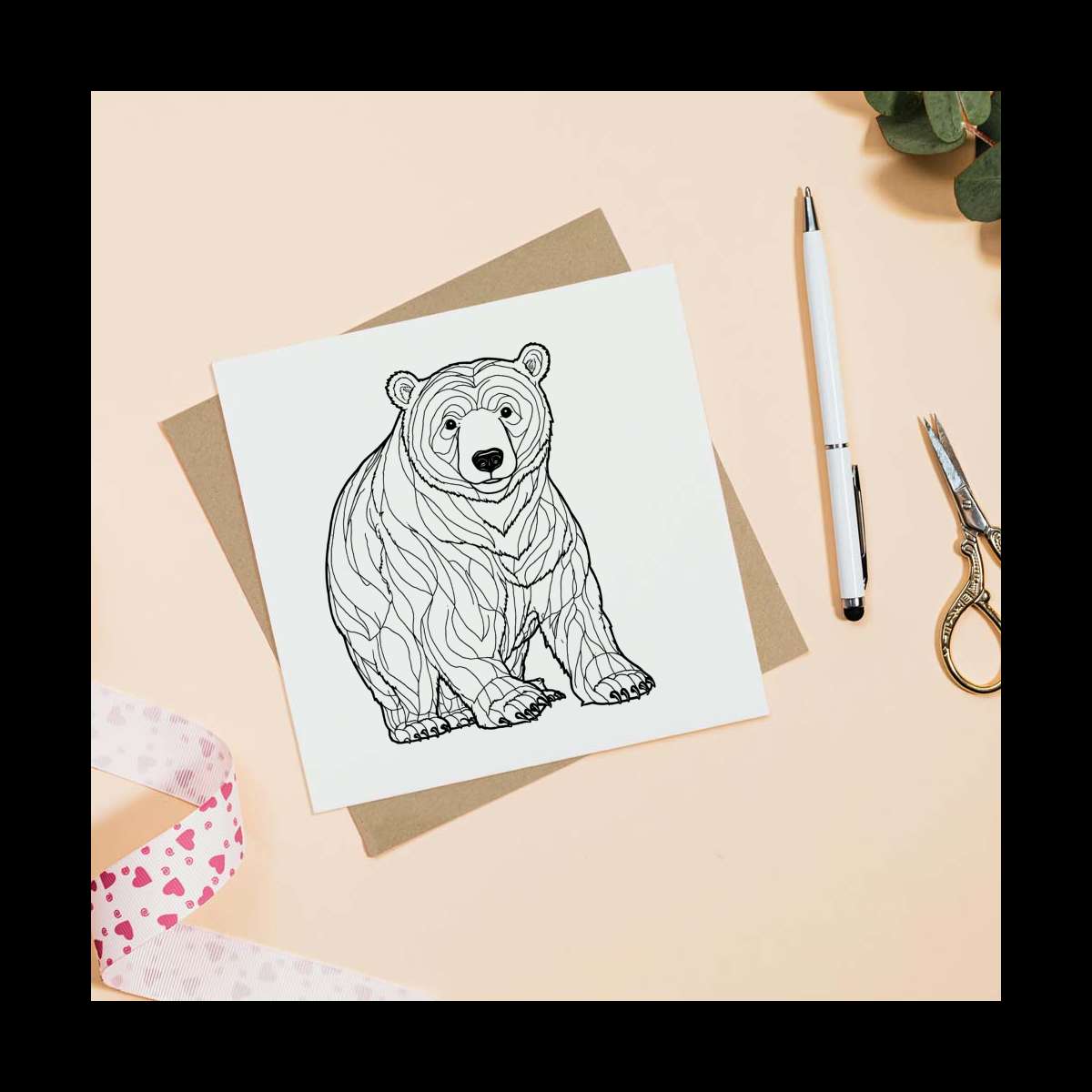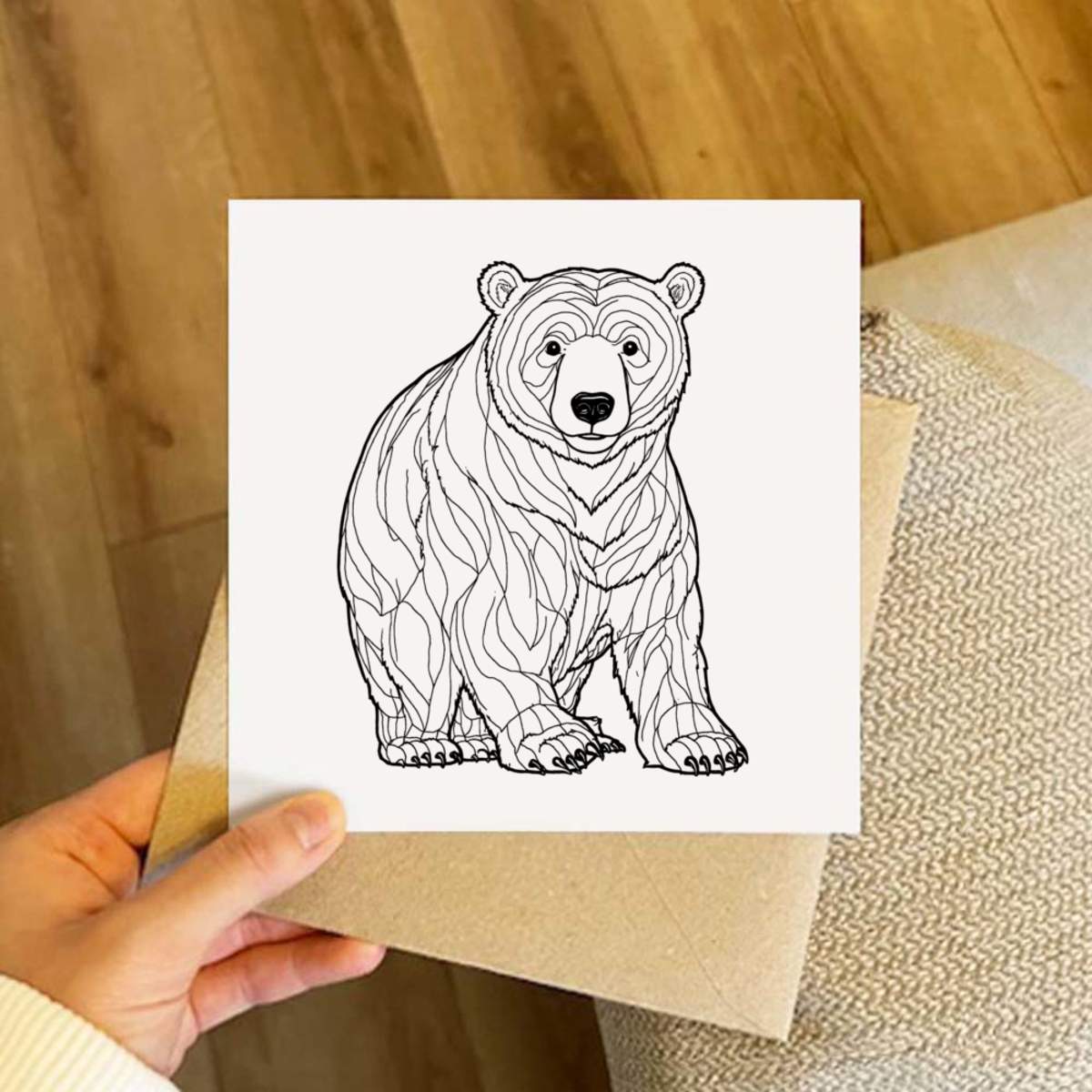 - Square greeting card supplied with a recycled brown envelope