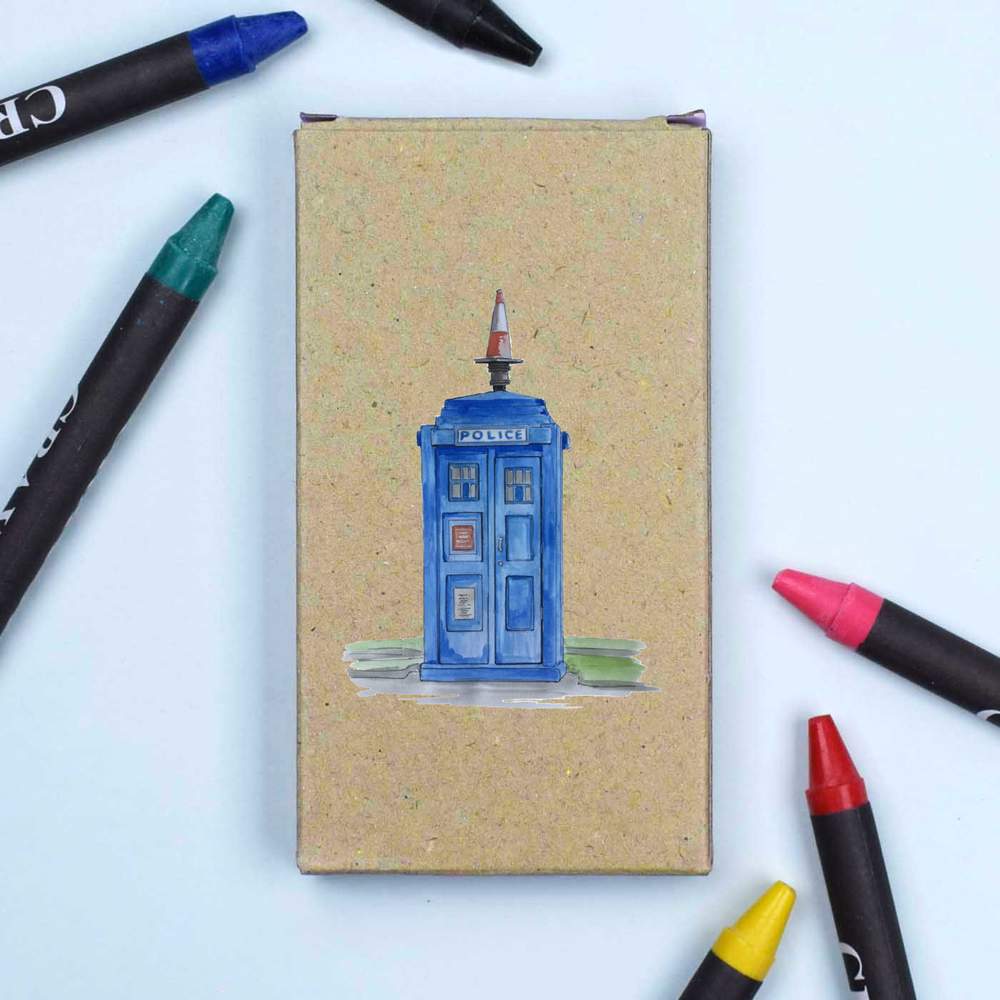 - A set of 6 vibrant colouring crayons with a handy storage box