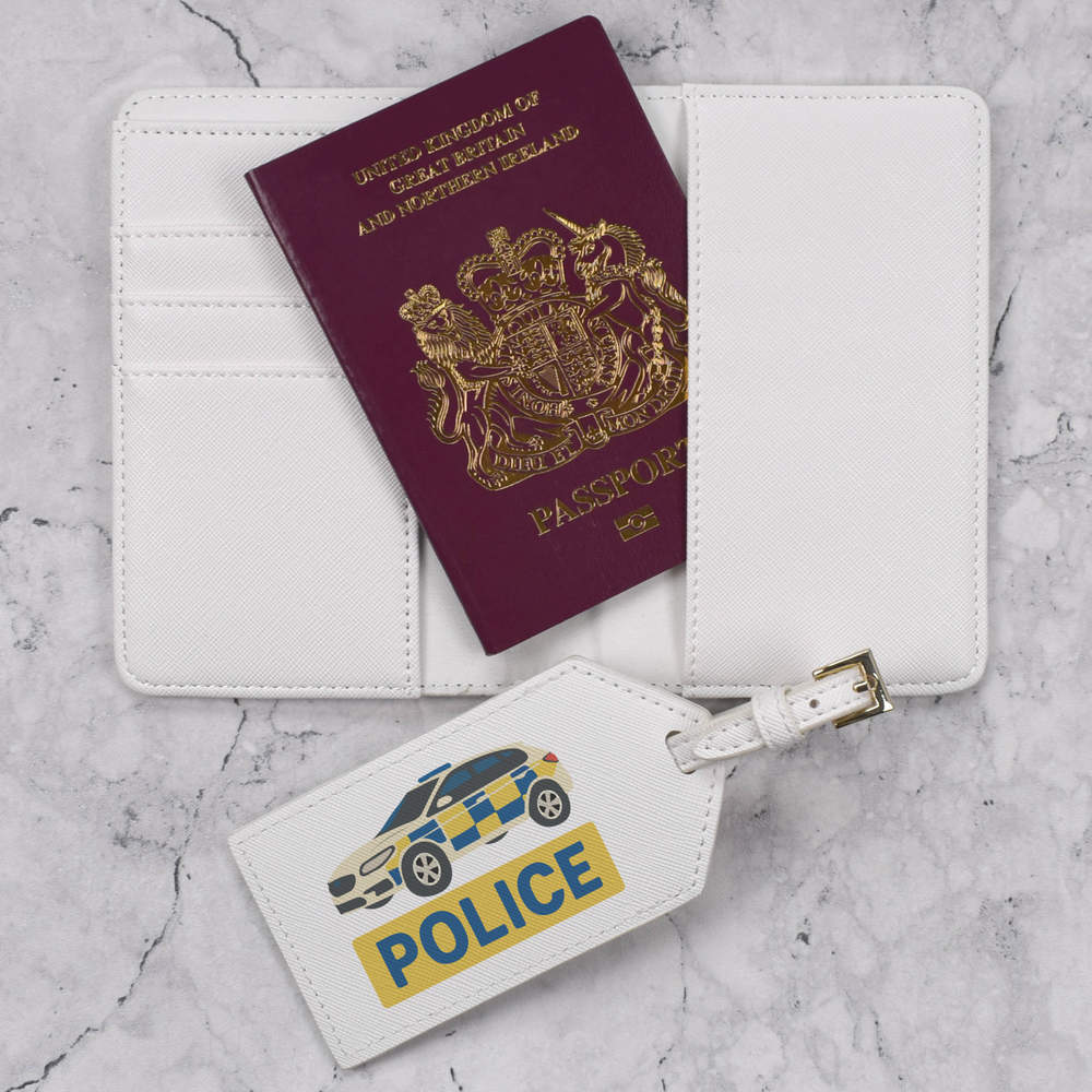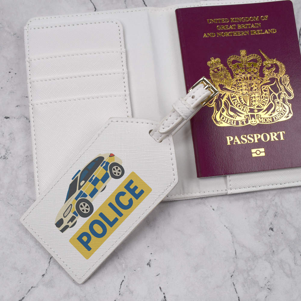 A luxury travel set for holiday makers and jet setters! This premium duo consists of a passport cover and matching luggage tag; both made from white, leather-look PU and printed with a unique design.