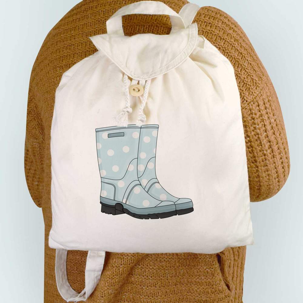 'Polka Dot Wellington Boots' Canvas Rucksack / Backpack (RK00017689)