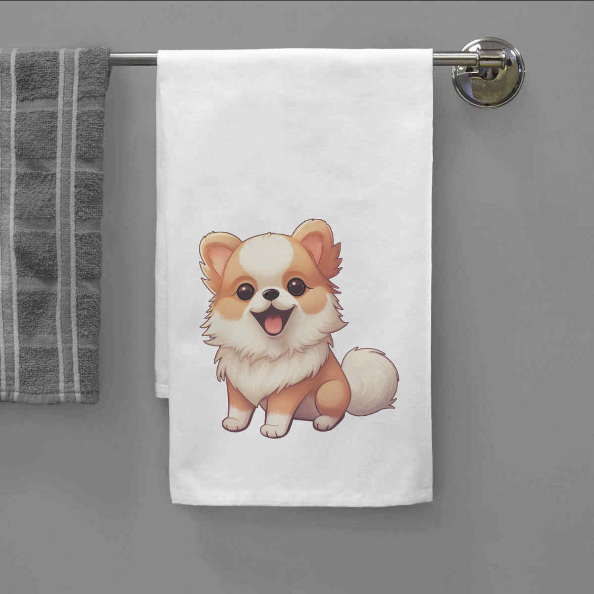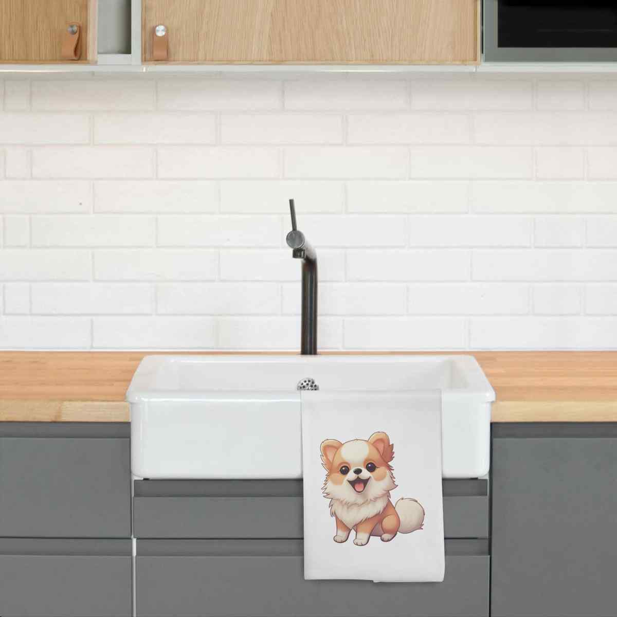 - White cotton tea towel with hanging loop