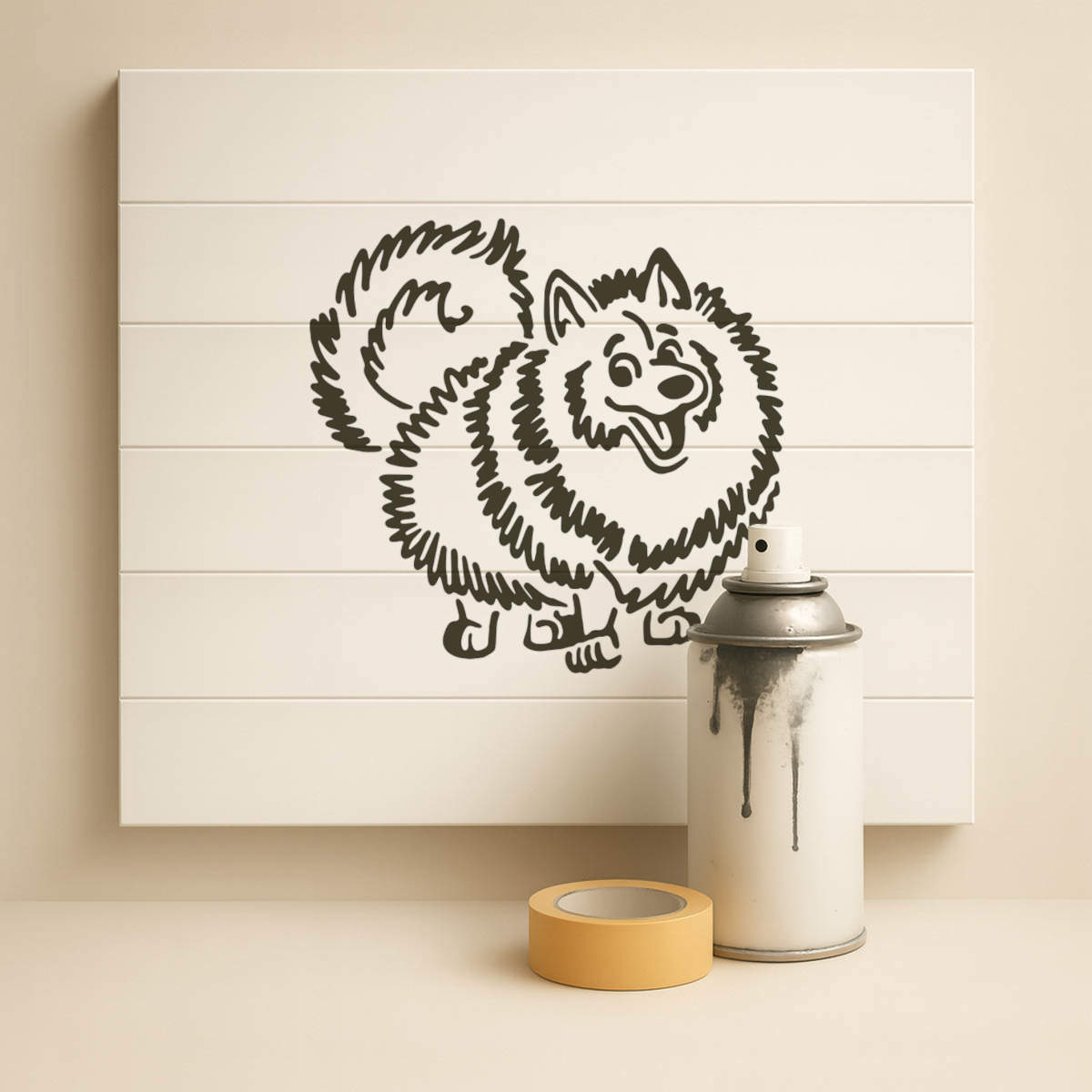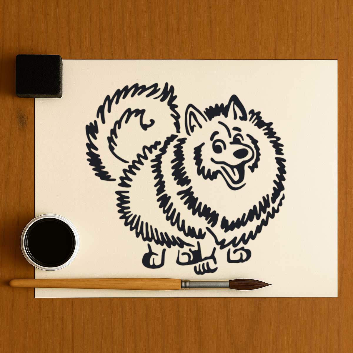'Pomeranian Dog' Reusable Stencil – Durable Decorative Template for Painting and Spraying on Walls, Tiles, Wood, Fabric & Craft Projects - M (A5) (WS00020992)